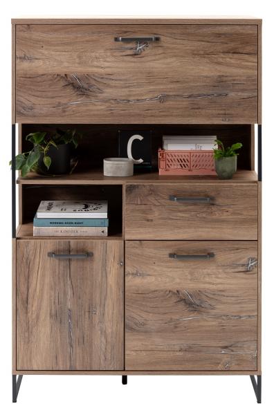 Flagstaff Eiche Dekor - Schwarz - Metall - B 95 cm - 2 Türen - 1 Klappe - 1 Schublade