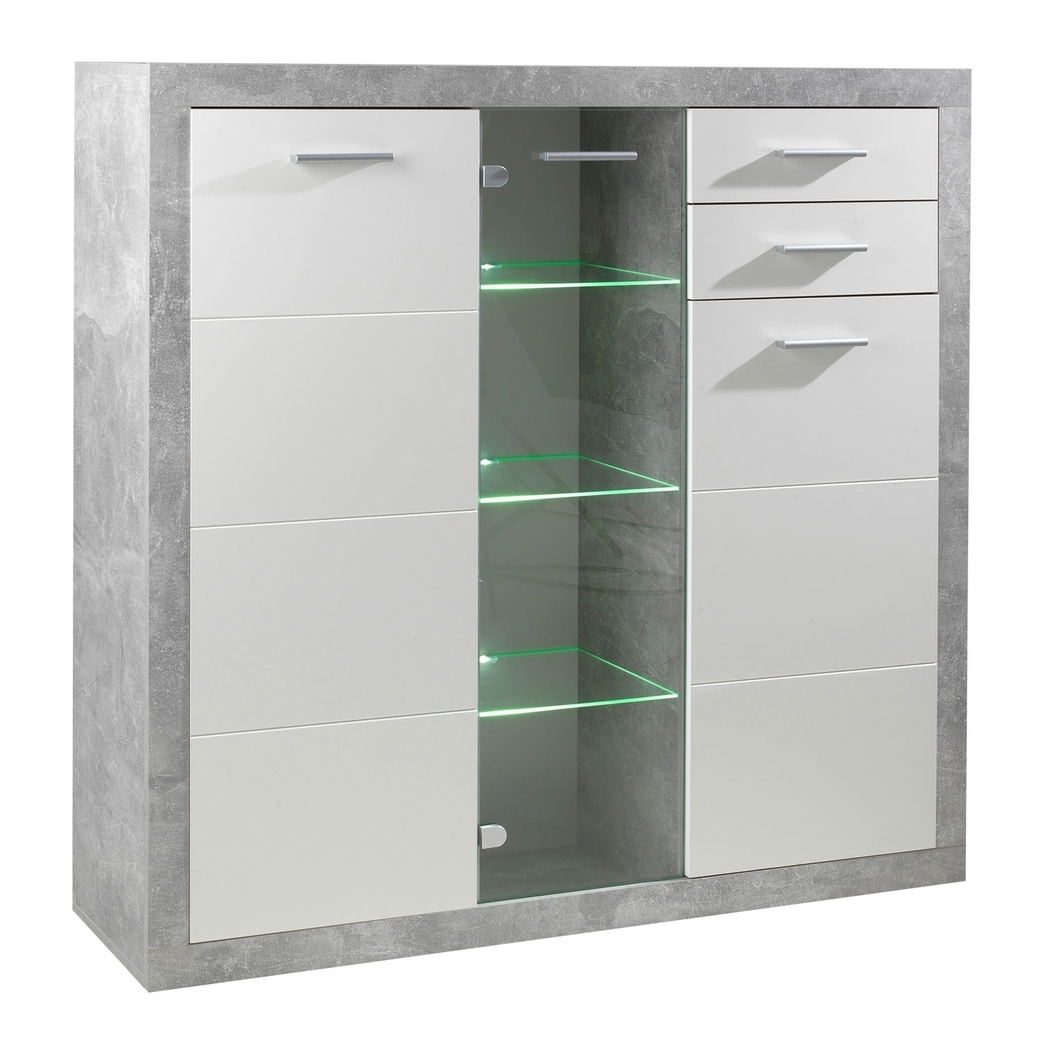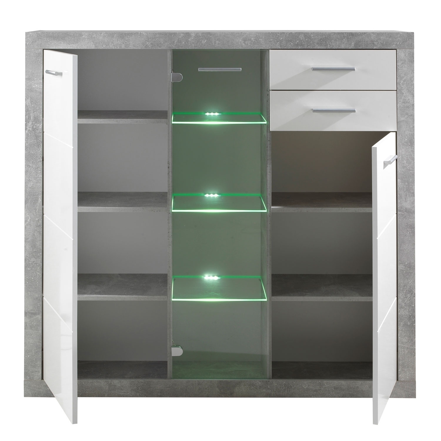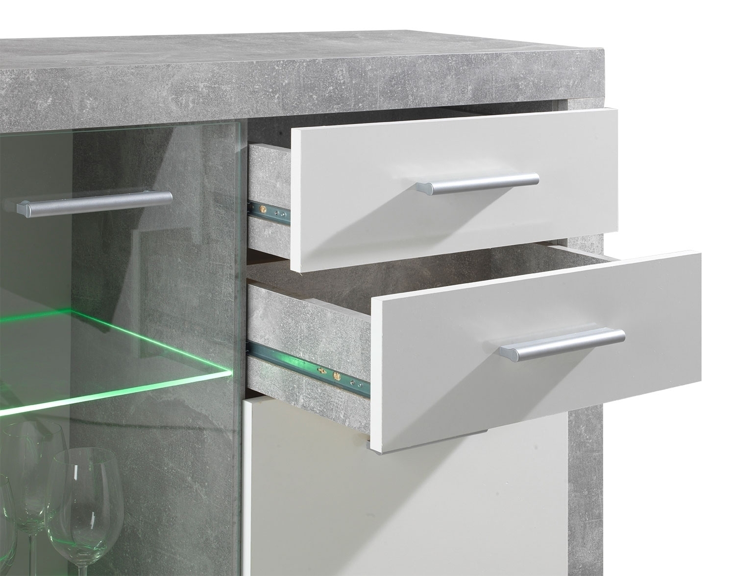 | Lieferumfang: | 1 Highboard mit 2 Türen, 1 Glastür und 2 Schubladen. Die LED-Beleuchtung ist enthalten |