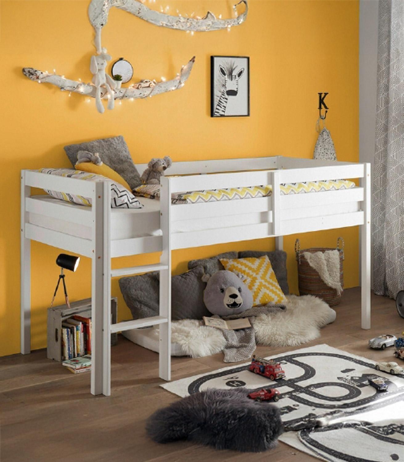 - Hochbett aus massivem Kiefernholz in Weiß