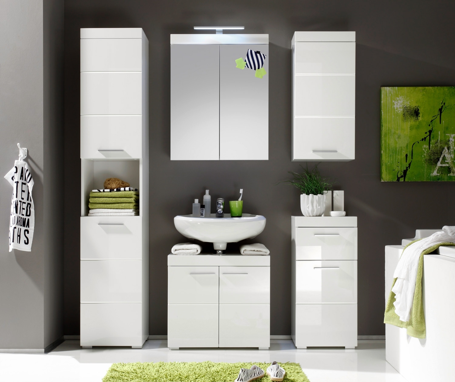 Weiß Hochglanz - B 37 cm - 2 Tür - 1 Ablage