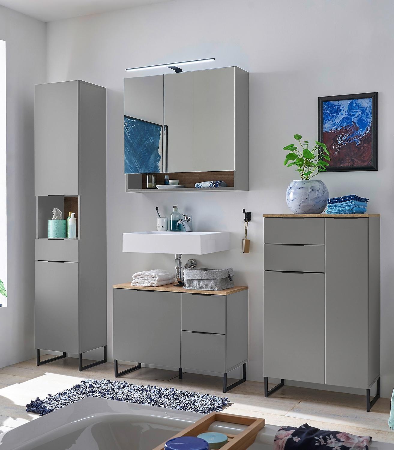 B 38 cm - 2 Türen - 1 Ablagefach - 1 Schublade - Grau