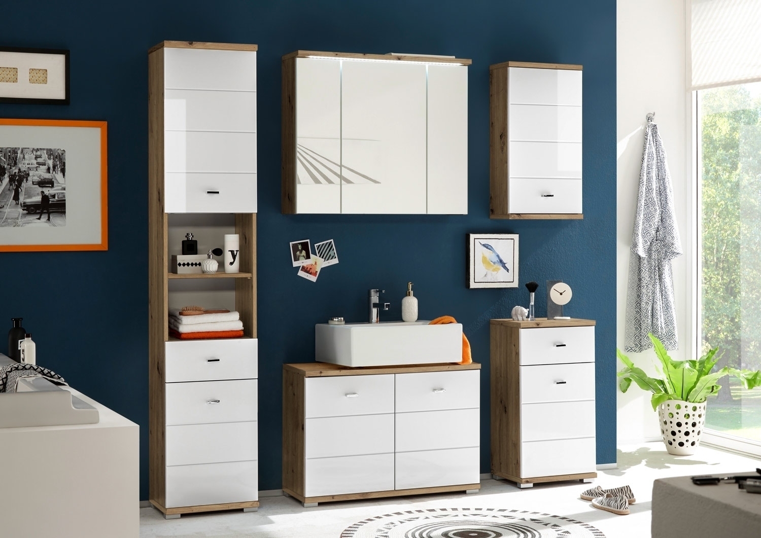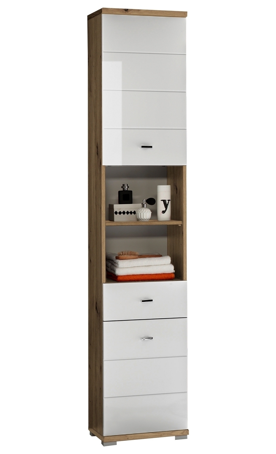 Weiß Hochglanz - Artisan Eiche Dekor - B 38 cm - 2 Türen