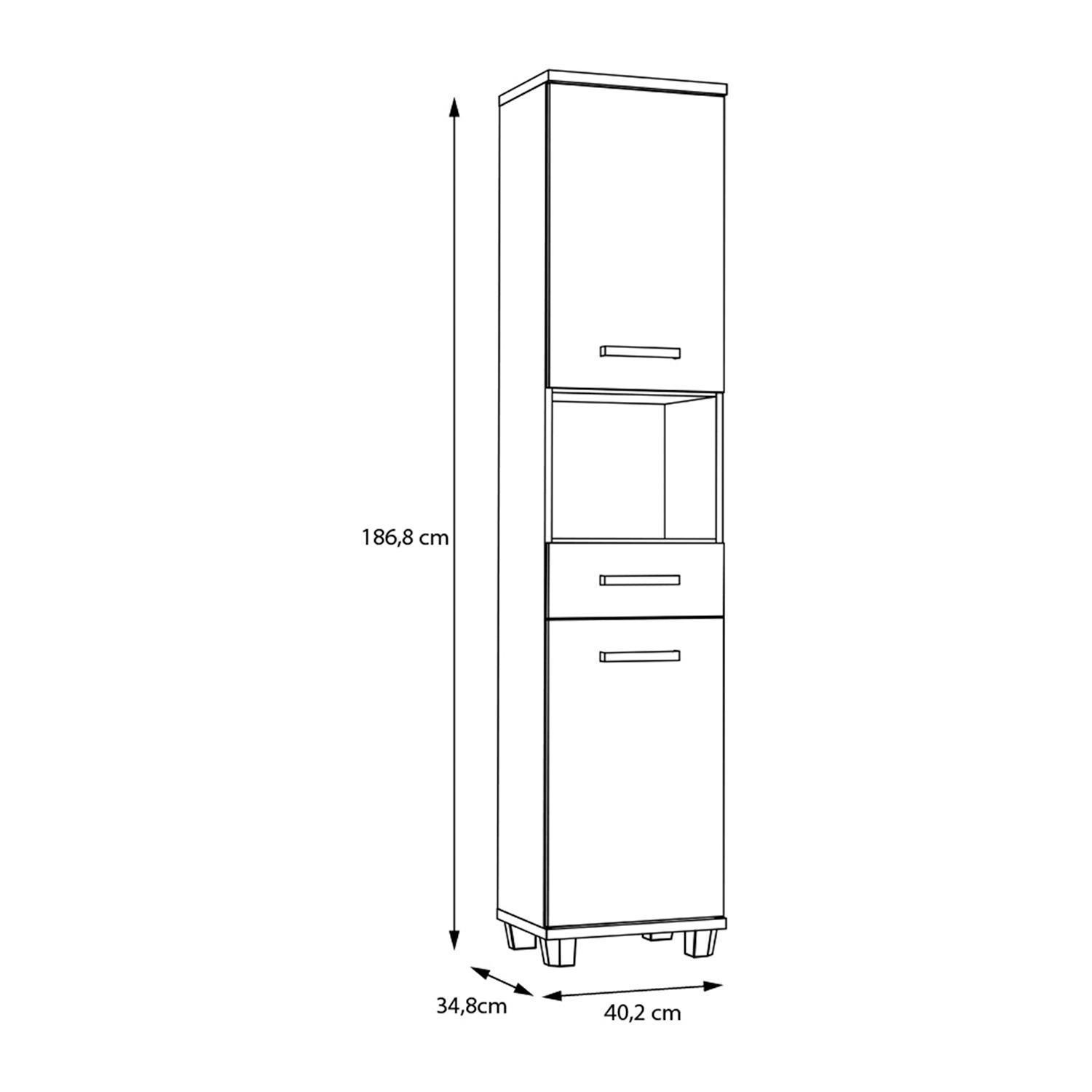 Der Hochschrank VICTORY ist eine platzsparende und dennoch funktionale Lösung für zusätzlichen Stauraum. Mit einer Breite von 40 cm, einer Höhe von 187 cm und einer Tiefe von 35 cm bietet er vielseitige Aufbewahrungsmöglichkeiten.