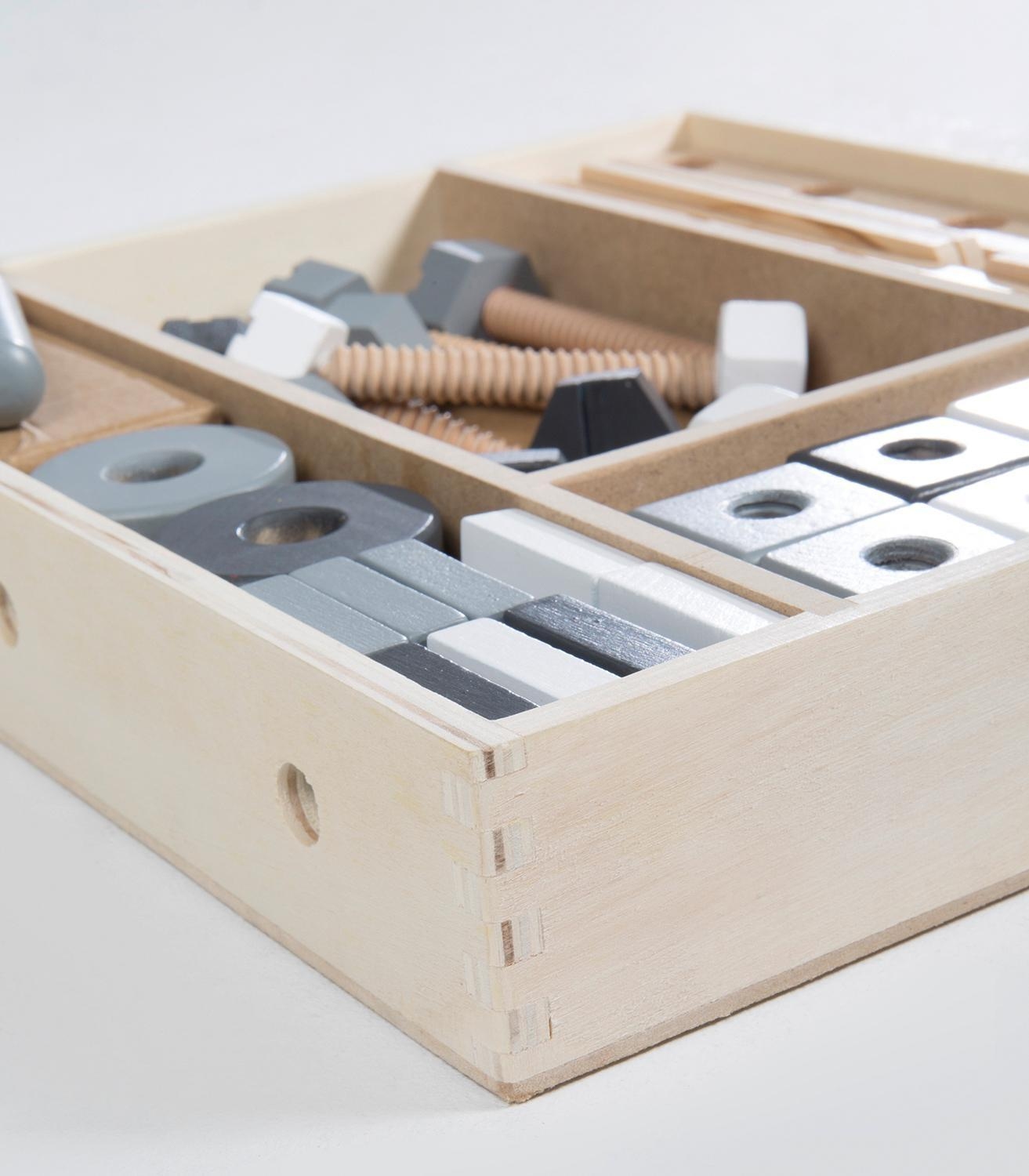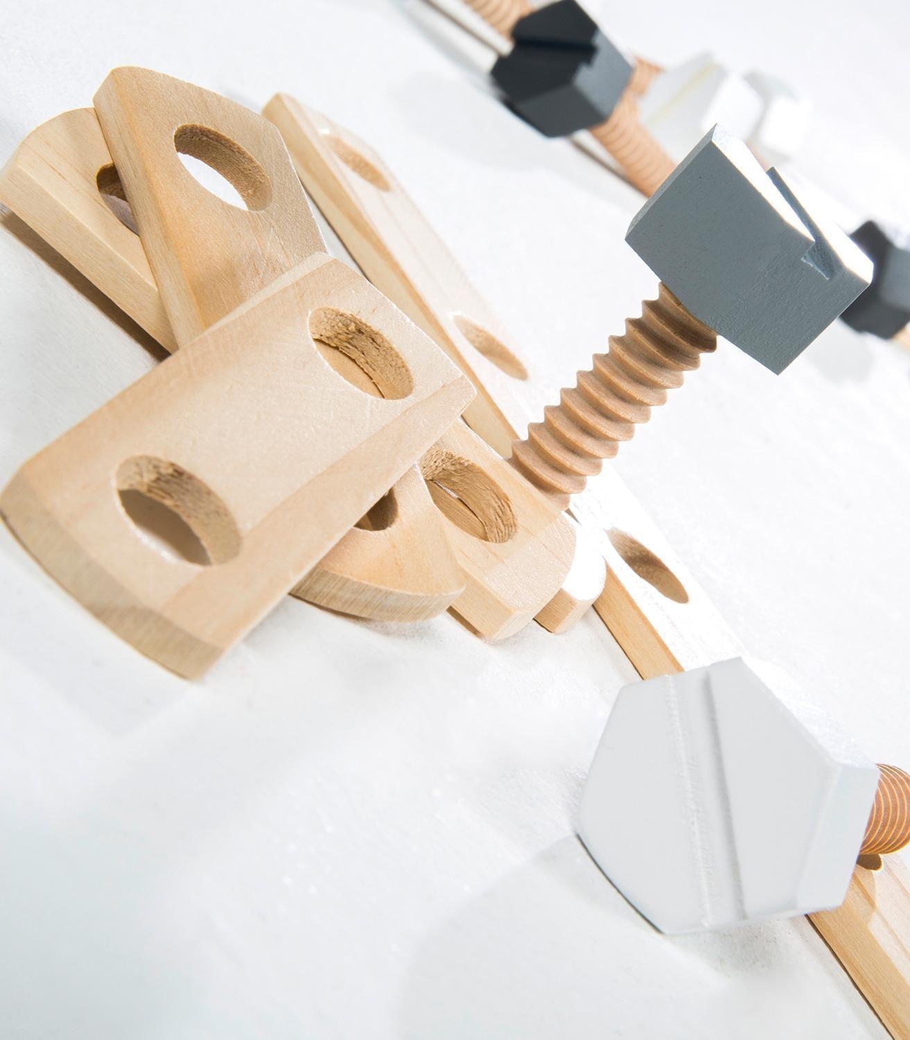 | Lieferumfang: | 48-teiliges Holzbaukasten-Set mit Werkzeugkasten, Werkzeug und Baumaterialien |
