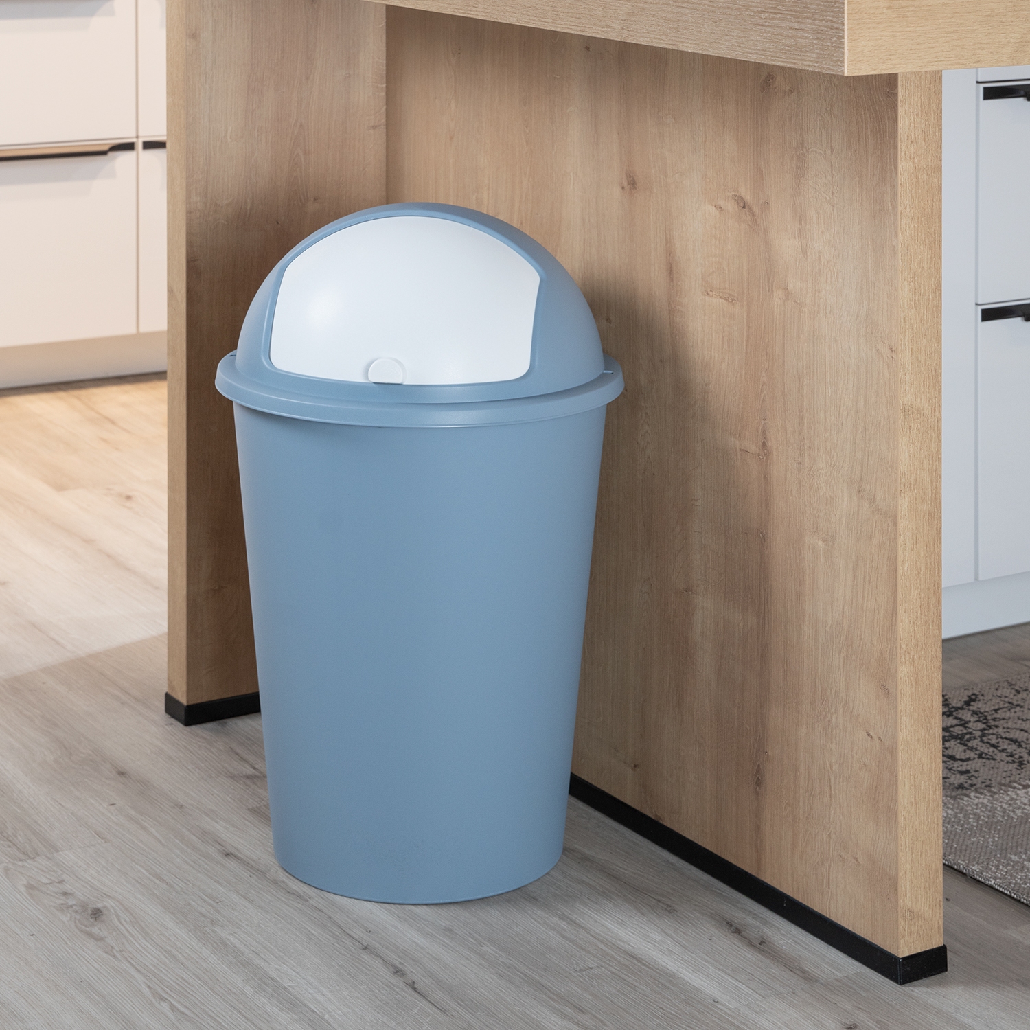 - Abfalleimer aus Kunststoff in weiß und pastellblau