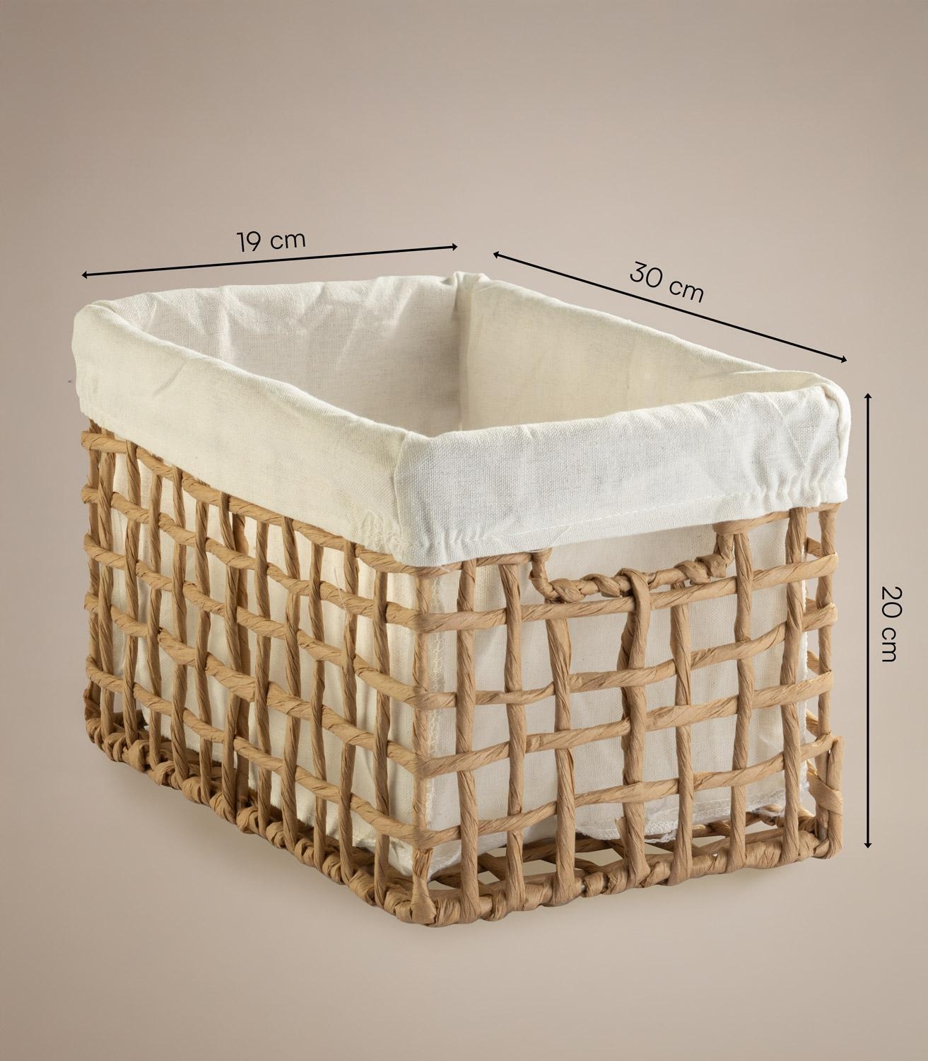Der Aufbewahrungskorb von Home4You ist in Beige gehalten und verfügt über ein Drahtgestell mit Papierumwicklung in Braun. Er ist mit einem abnehmbaren Stoffeinsatz ausgestattet. Der Korb eignet sich zur Aufbewahrung von Pflegeprodukten, Dekoration und weiteren Gegenständen. Die Maße betragen 30 cm in der Breite, 20 cm in der Höhe und 19 cm in der Tiefe.