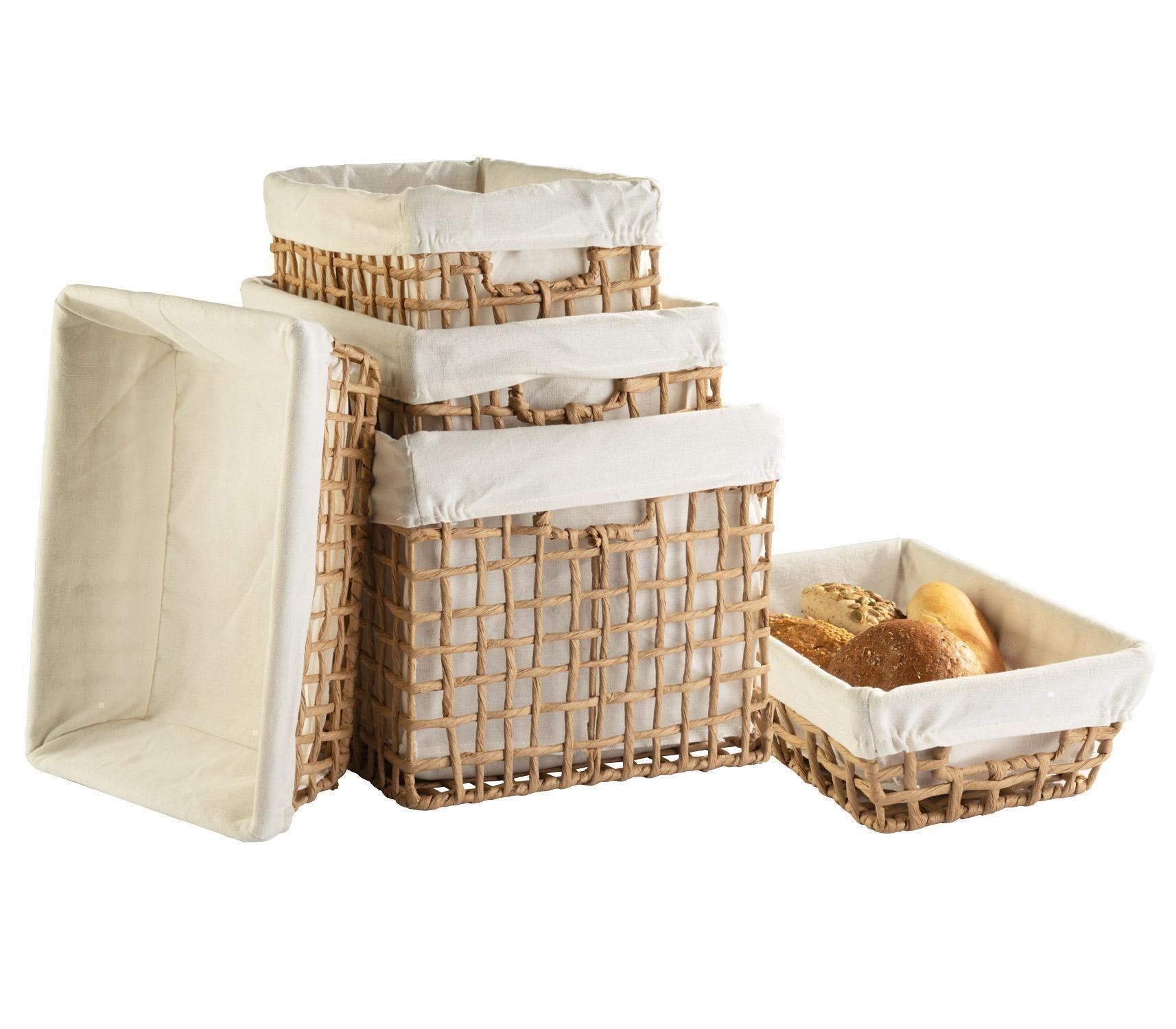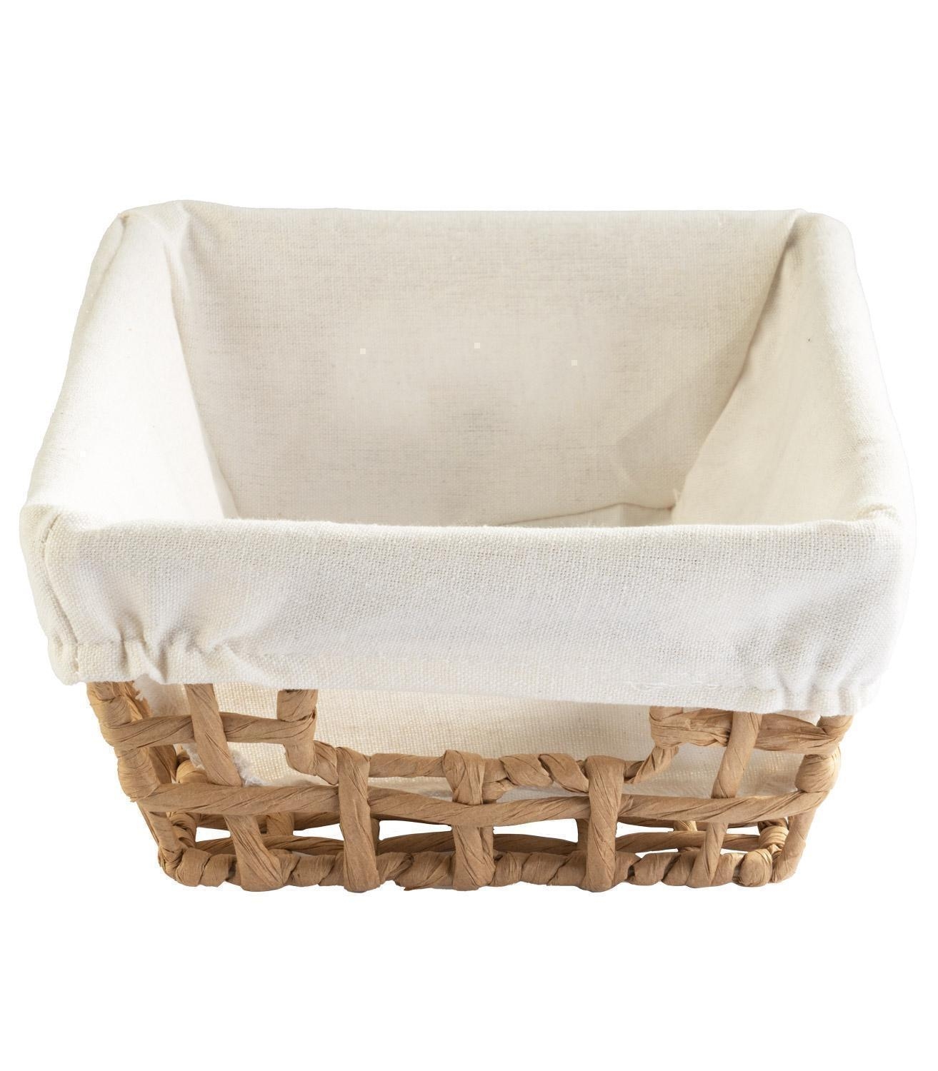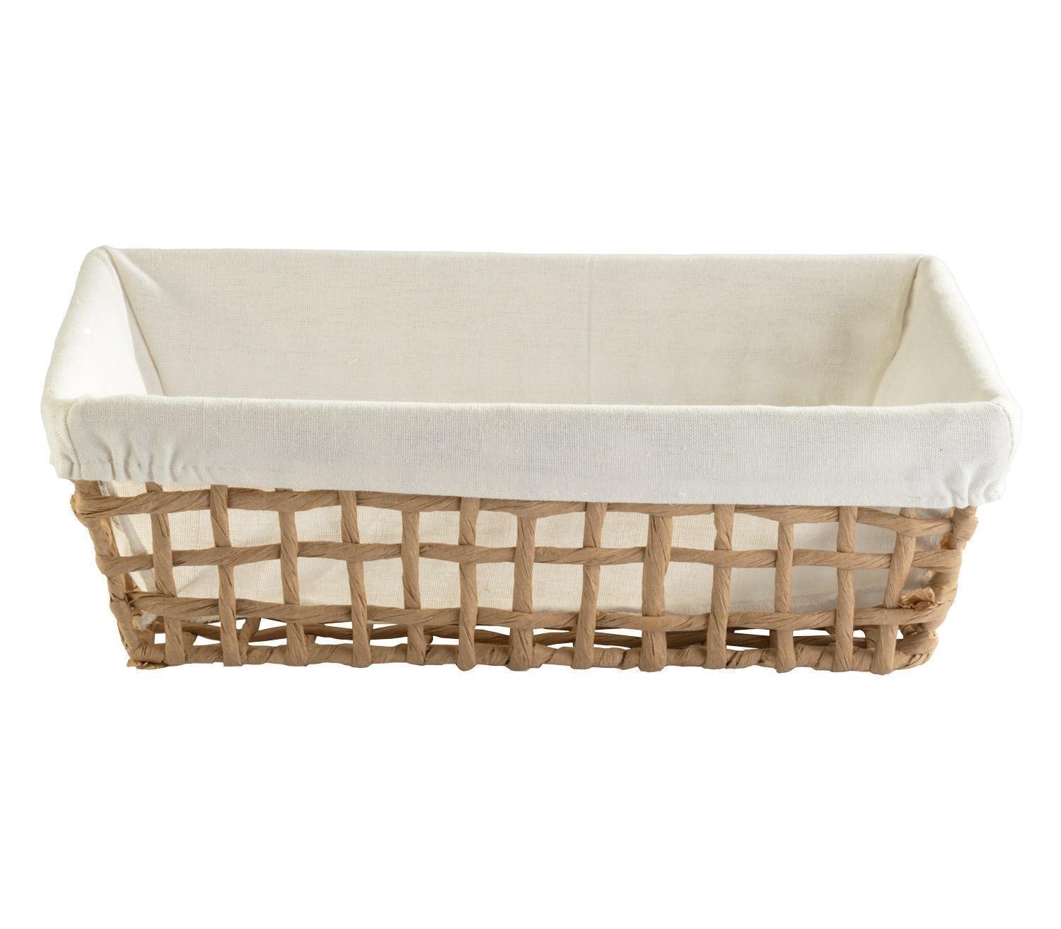 Der Aufbewahrungskorb JETTA von Home4You ist in Beige gehalten und verfügt über ein Drahtgestell mit Papierumwicklung in Braun. Er ist mit einem abnehmbaren Stoffeinsatz ausgestattet. Der Korb eignet sich zur Aufbewahrung von Pflegeprodukten, Dekoration und weiteren Gegenständen. Die Maße betragen 30 cm in der Breite, 10 cm in der Höhe und 20 cm in der Tiefe.