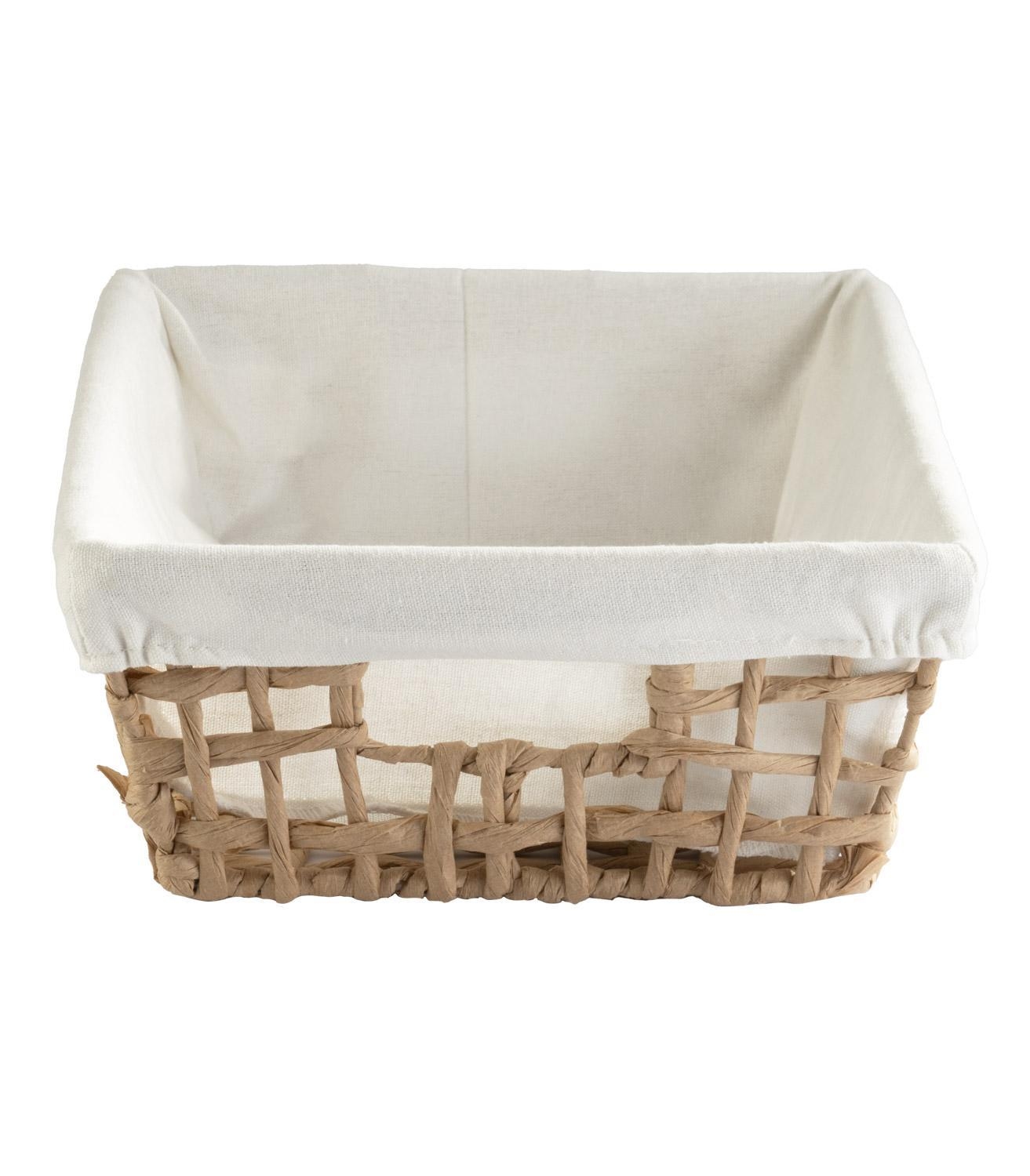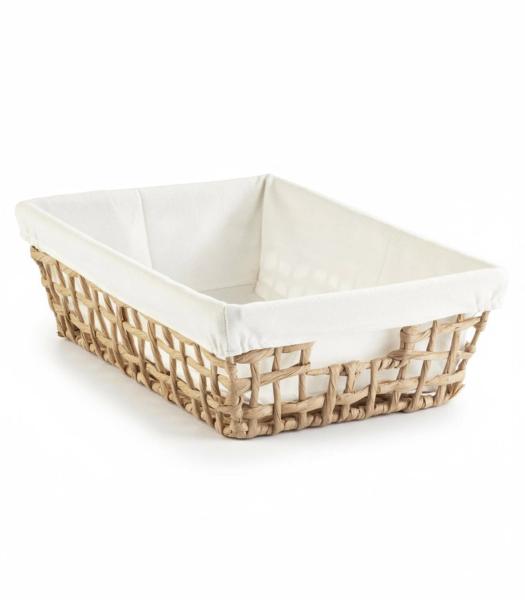 Der Aufbewahrungskorb JETTA von Home4You ist in Beige gehalten und verfügt über ein Drahtgestell mit Papierumwicklung in Braun. Er ist mit einem abnehmbaren Stoffeinsatz ausgestattet. Der Korb eignet sich zur Aufbewahrung von Pflegeprodukten, Dekoration und weiteren Gegenständen. Die Maße betragen 35 cm in der Breite, 11 cm in der Höhe und 25 cm in der Tiefe.