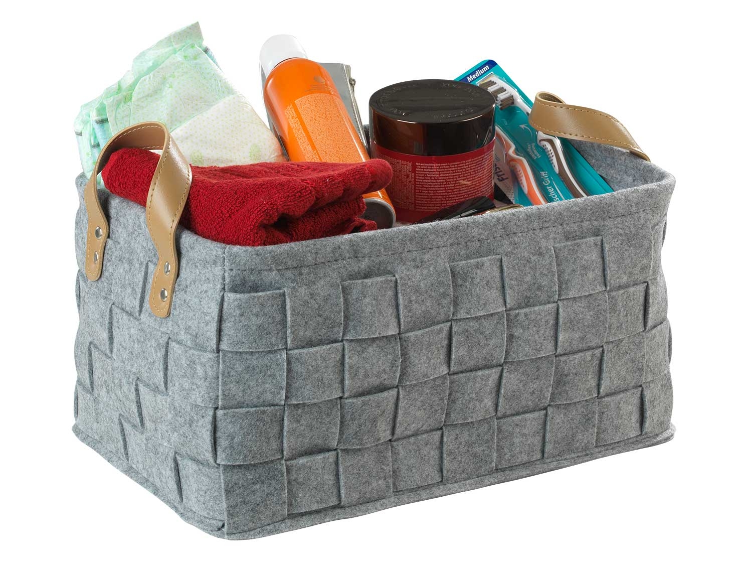 Home4You präsentiert einen stilvollen grauen Korb, der mit seinem unifarbenen Design und den Lederoptik-Griffen ein Blickfang ist. Mit einer Breite von 37 cm, einer Höhe von 20 cm und einer Tiefe von 24 cm bietet er ausreichend Platz und Stauraum. Das Material besteht aus robustem Filzgeflecht, das für Haltbarkeit sorgt. Ideal für die Aufbewahrung verschiedener Gegenstände in jedem Raum des Hauses.