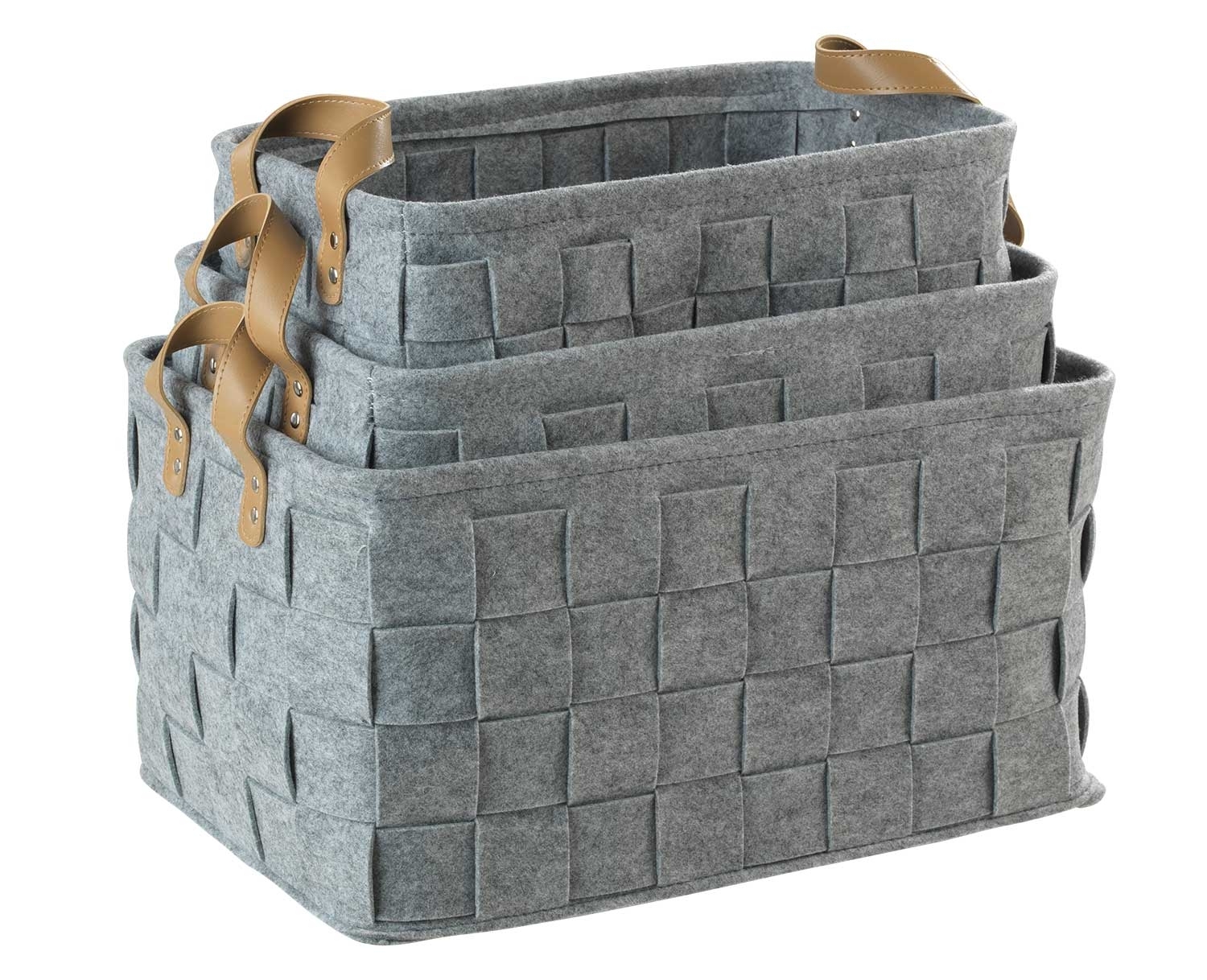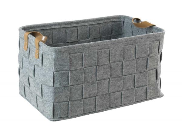 Home4You präsentiert einen stilvollen grauen Korb, der mit seinem unifarbenen Design und den Lederoptik-Griffen ein Blickfang ist. Mit einer Breite von 47 cm, einer Höhe von 26 cm und einer Tiefe von 30 cm bietet er ausreichend Platz und Stauraum. Das Material besteht aus robustem Filzgeflecht, das für Haltbarkeit sorgt. Ideal für die Aufbewahrung verschiedener Gegenstände in jedem Raum des Hauses.