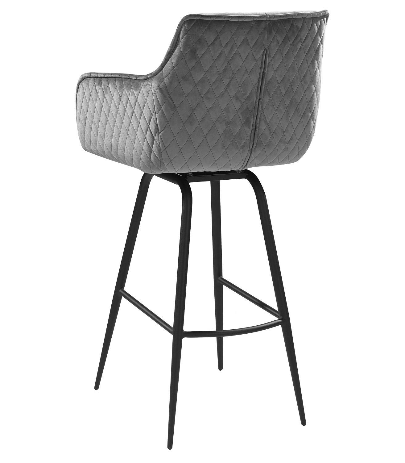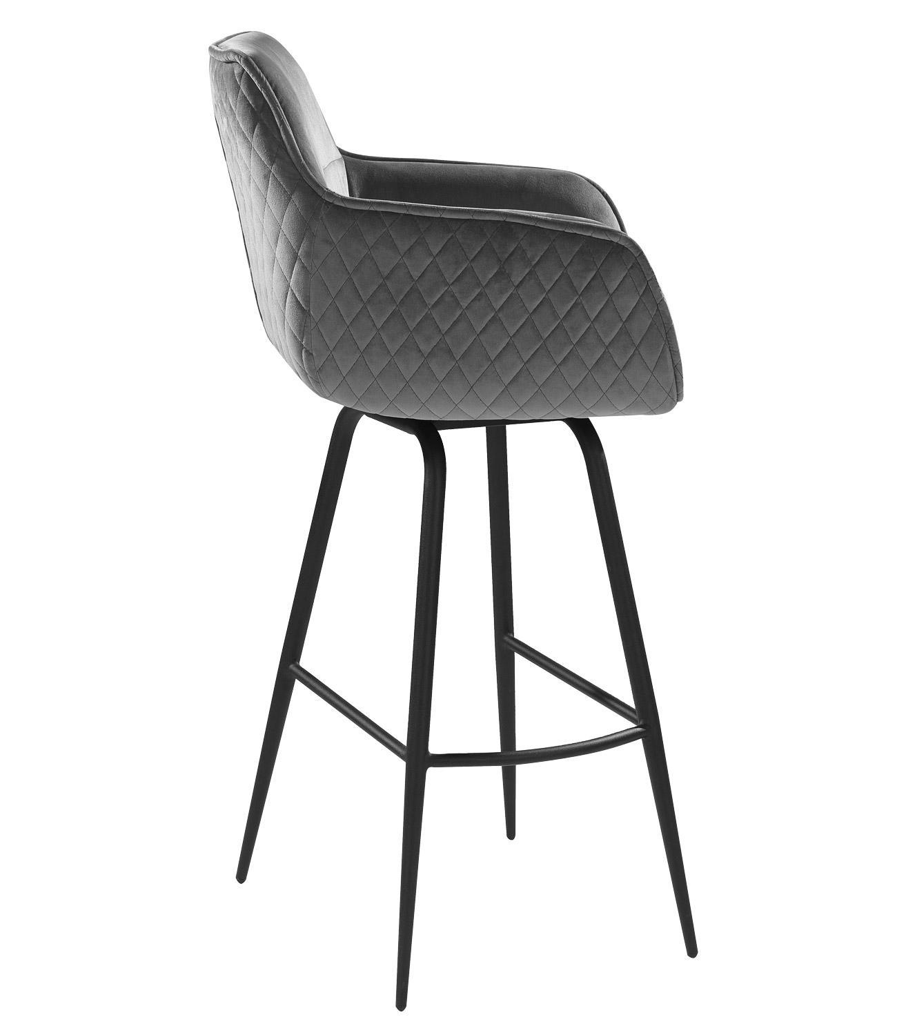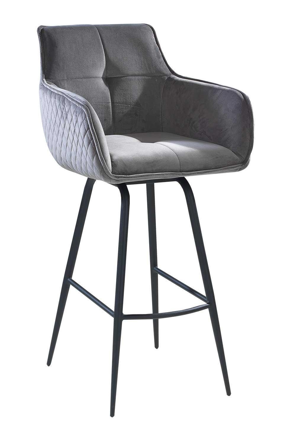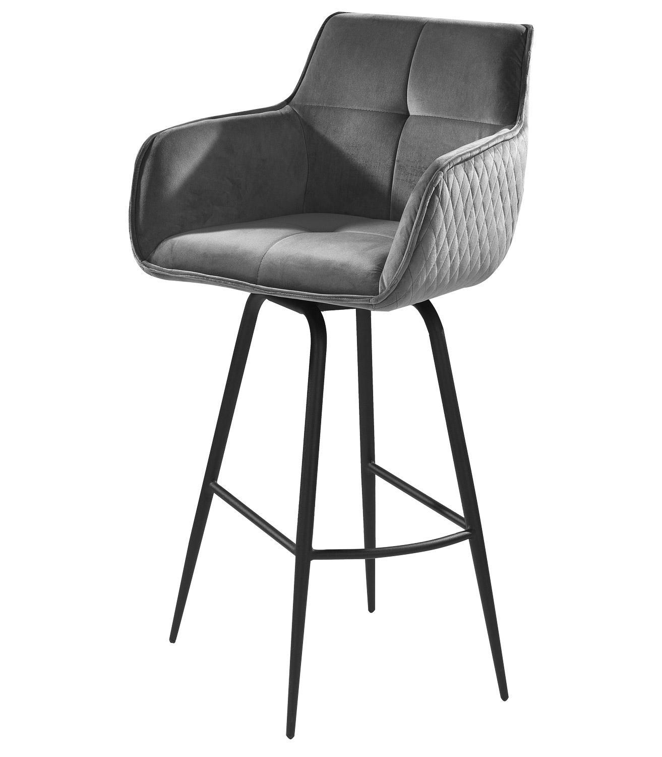 Der Barhocker JORIS von Home4You vereint stilvolles Design und hohen Komfort. Mit seinem eleganten schwarzen Samtbezug und einem stabilen Metallgestell in Schwarz ist er ein echter Hingucker. Die bequemen Armlehnen und die praktische Fußablage sorgen für zusätzlichen Sitzkomfort. Der Hocker ist 360 Grad drehbar ohne Rückstellfunktion, was Flexibilität ermöglicht. Mit einer Breite von 55 cm, einer Höhe von 106 cm und einer Tiefe von 50 cm bietet er ausreichend Platz. Die maximale Belastbarkeit liegt bei 120 kg.