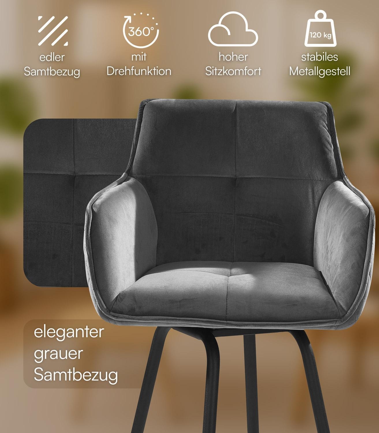 Grau - H 106 cm - Samtbezug - Metallgestell - 360 Grad drehbar