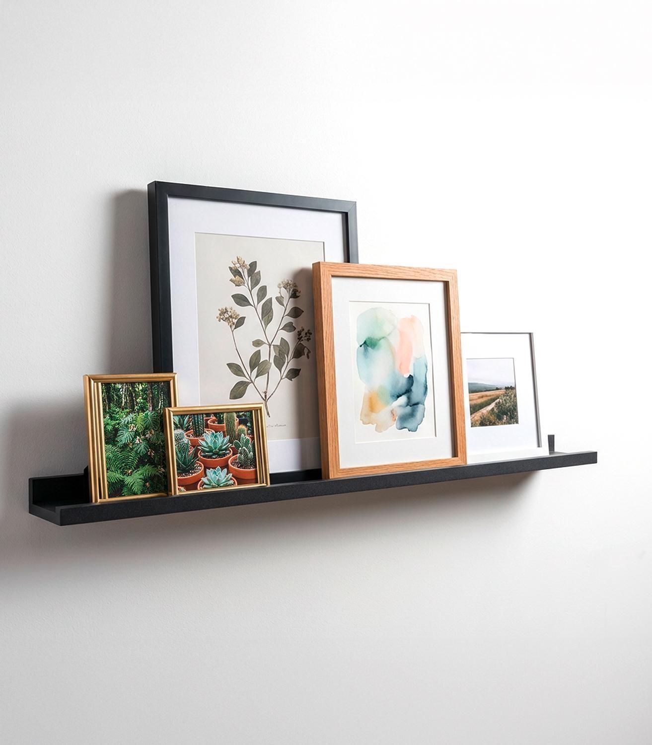 Die Bilderleiste ENZO von Home4You ist eine stilvolle Lösung zur Präsentation von Fotos, Postkarten oder kleinen Dekorationen. In Schwarz matt gehalten und aus MDF und PVC gefertigt, fügt sie sich harmonisch in verschiedene Wohnstile ein. Mit einer Größe von 100 x 10 cm bietet sie ausreichend Platz für schöne Motive und Erinnerungsstücke. Die Leiste ist bis 5 kg belastbar und eignet sich ideal für Wandgestaltung mit persönlicher Note.