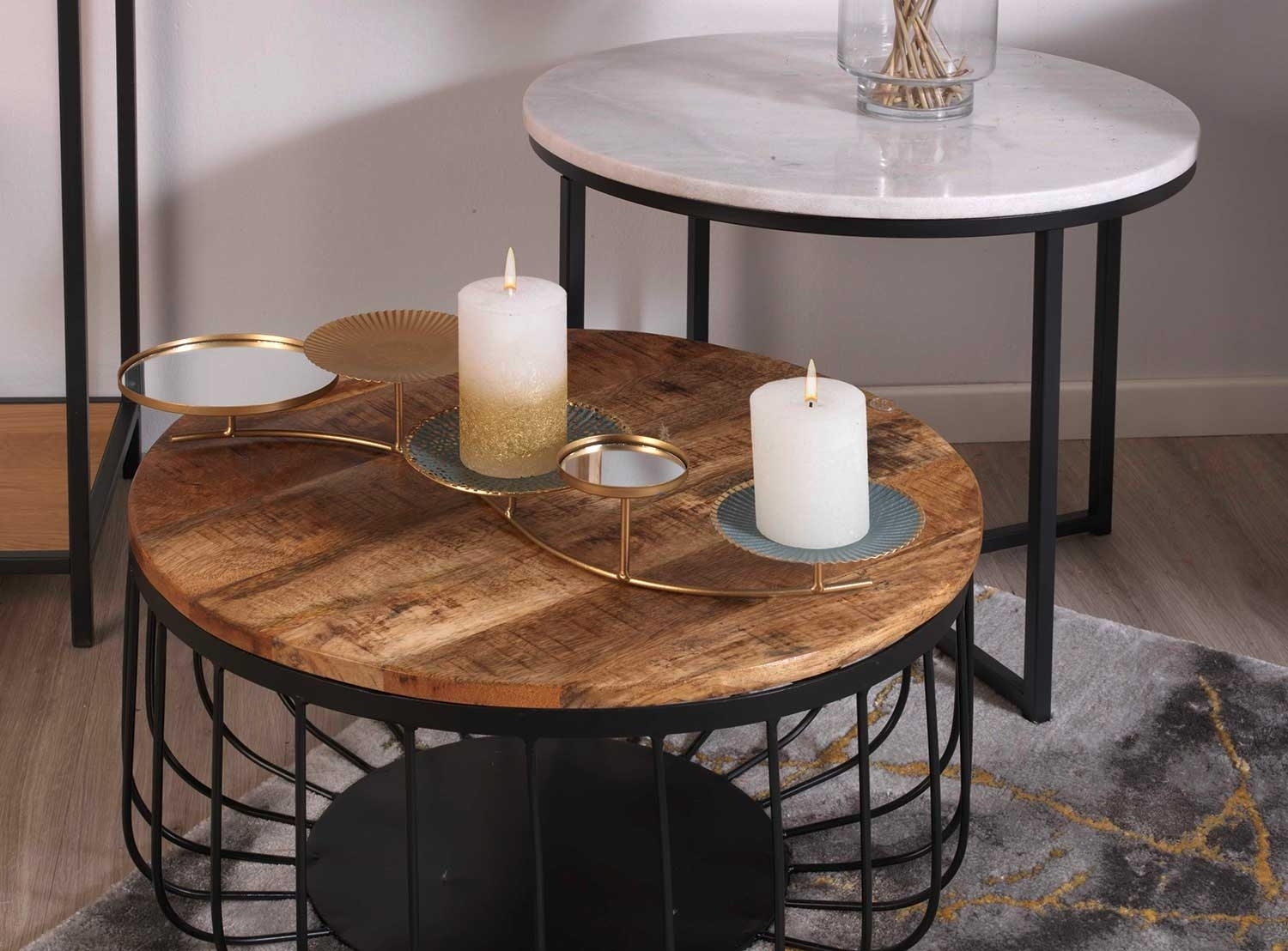 Mangoholz - Metallgestell - Ø 90 cm