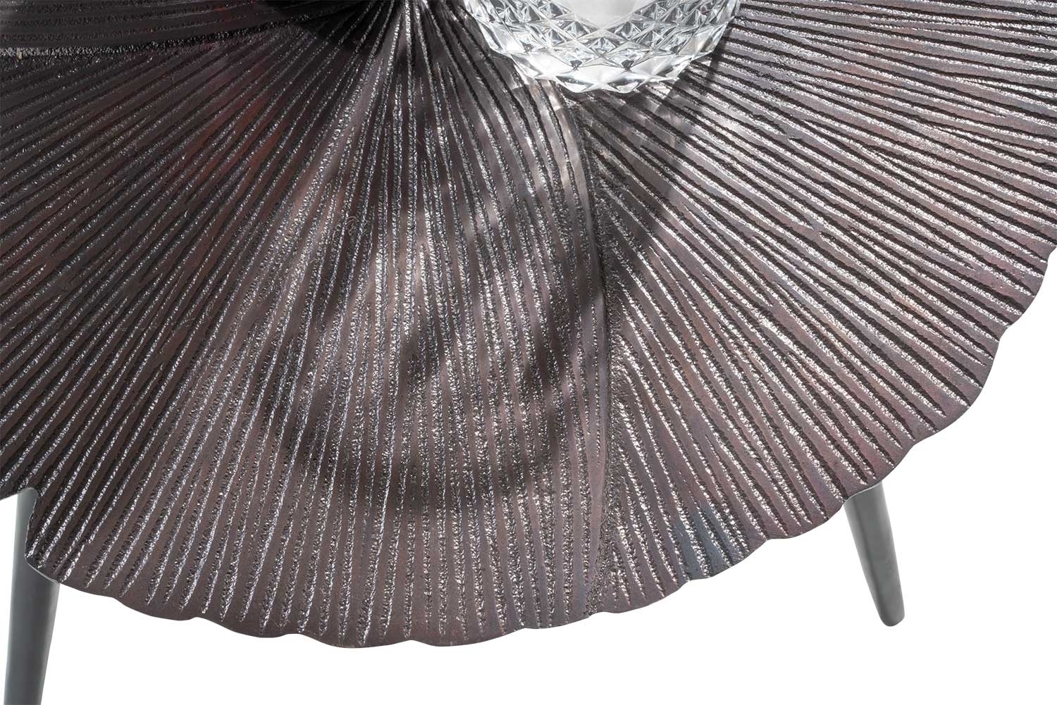 Der Couchtisch von Home4You ist eine elegante Ergänzung für jedes Wohnzimmer. In Bronzefarben und Schwarz gehalten, bietet er mit einem Durchmesser von 40 cm und einer Höhe von 32 cm ausreichend Platz und Stil. Die Tischplatte und das Gestell sind beide aus Metall gefertigt, wobei das Gestell in Schwarz gehalten ist. Die strukturierte Oberfläche der Tischplatte verleiht dem Tisch eine moderne Note und sorgt für einzigartige Ästhetik. Perfekt für den Einsatz als Beistelltisch oder als Blickfang in Ihrem Wohnzimmer.