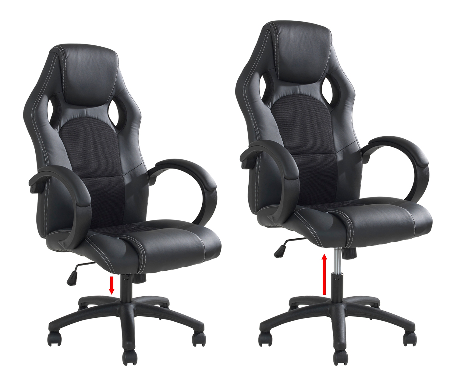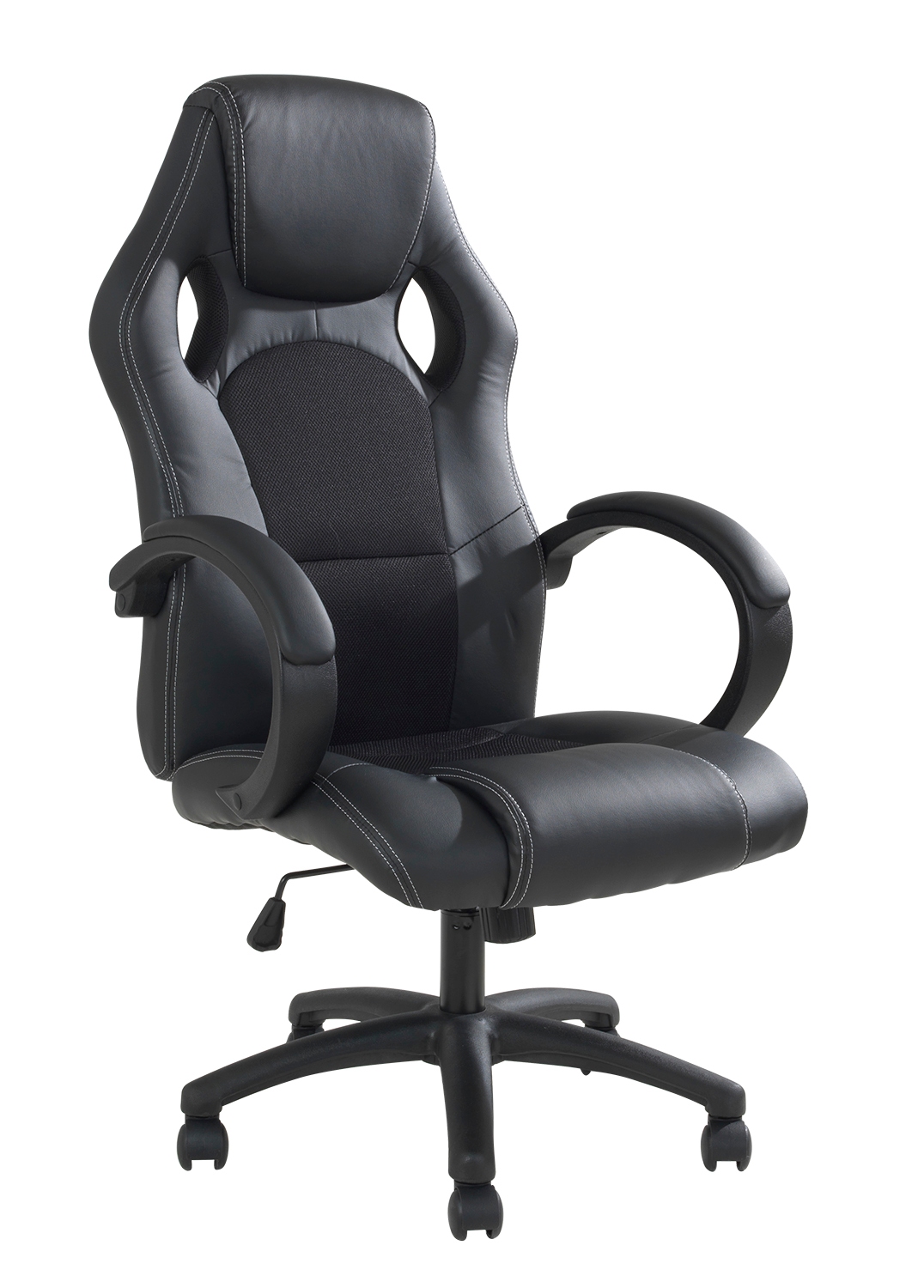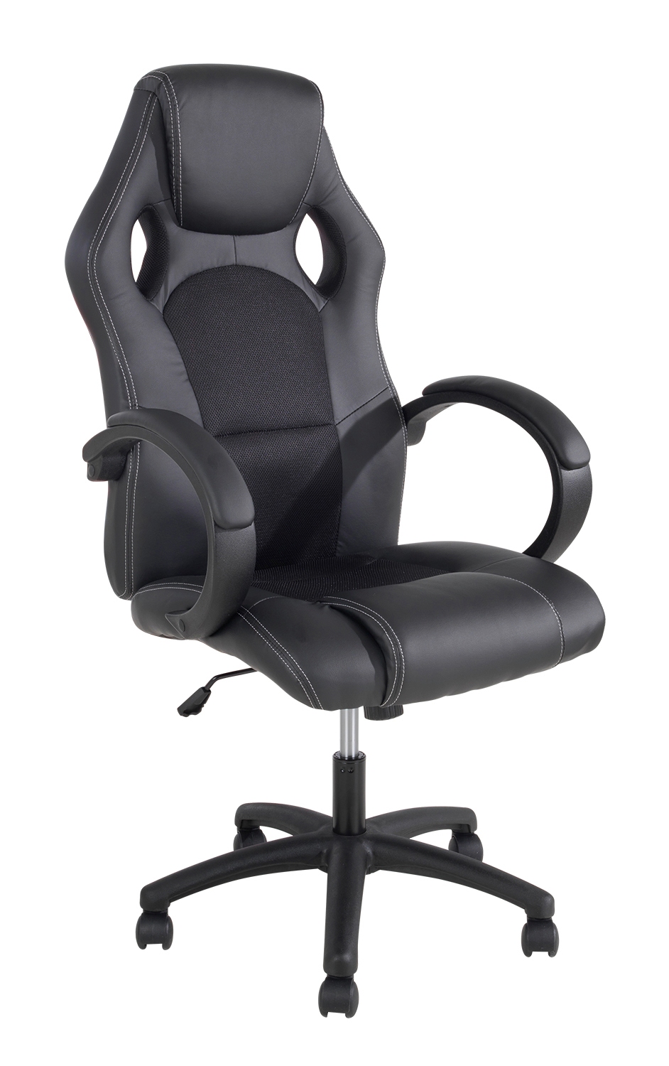 Schwarz - Kunstleder - Mesh - mit Armlehnen