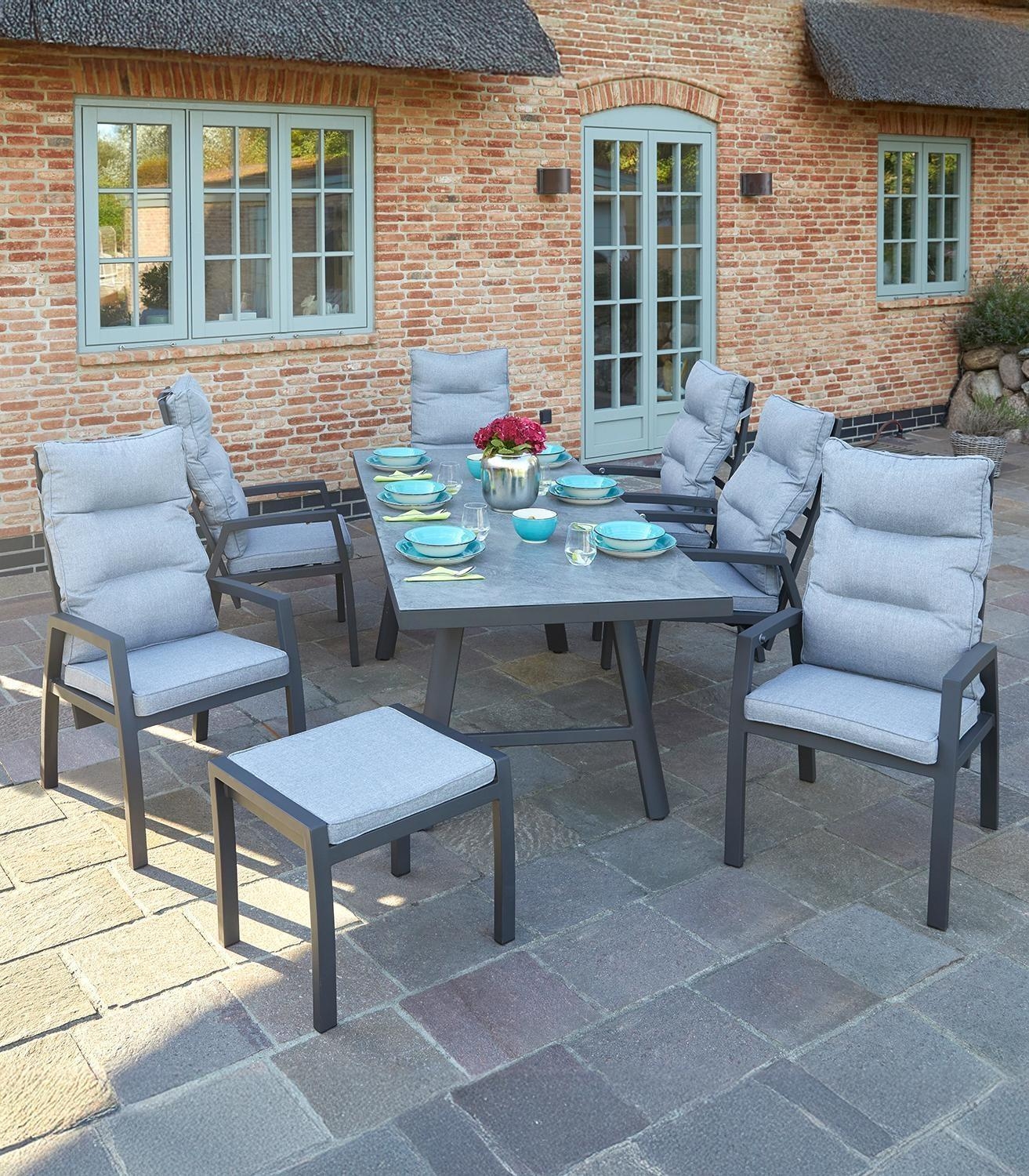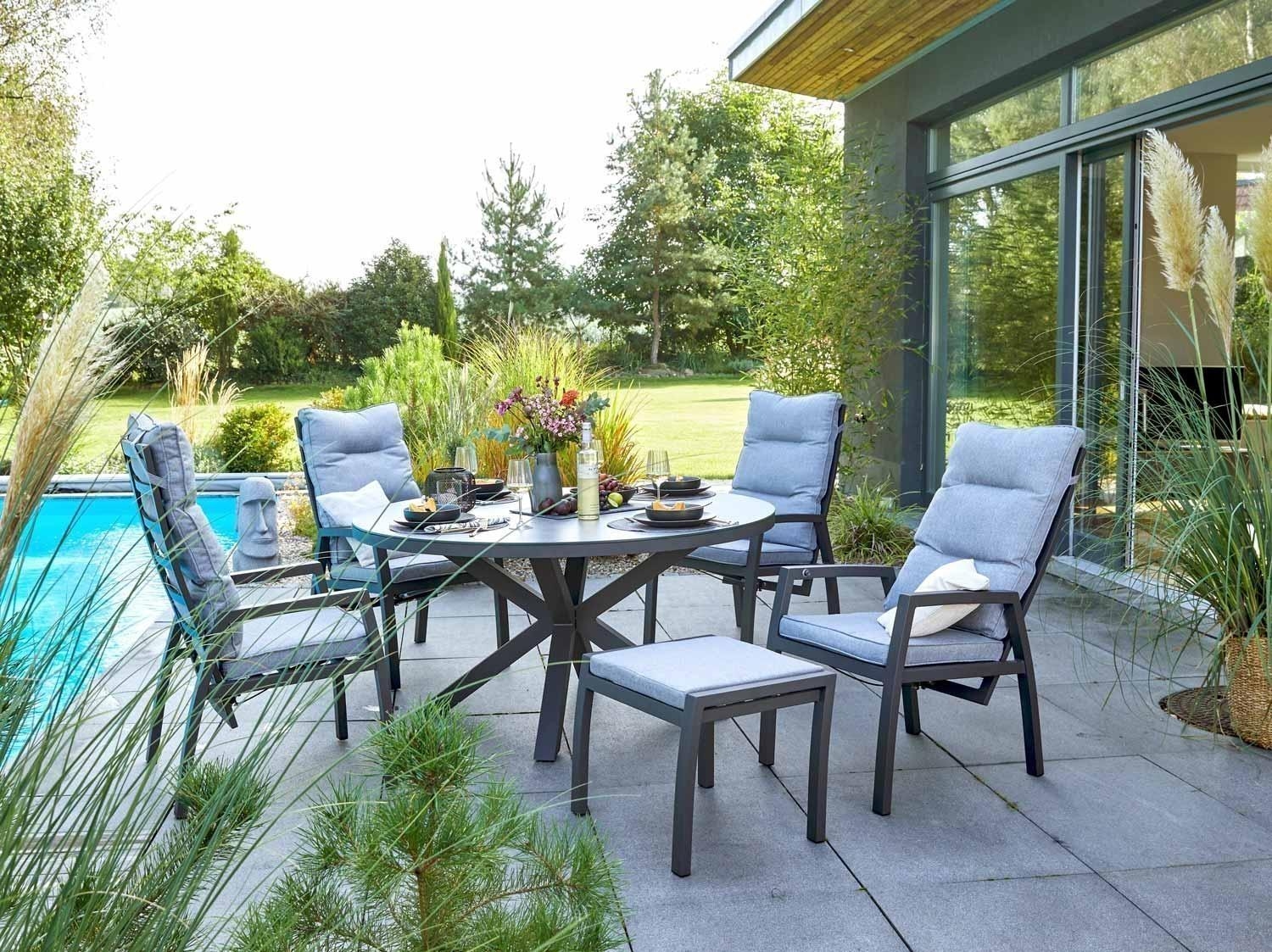 Das Gestell aus Aluminium ist überaus stabil, hitzebeständig, rostfrei und langlebig. Das Material ist sehr leicht und ideal für Gartenmöbel, da es für die Verwendung im Außenbereich geeignet ist.