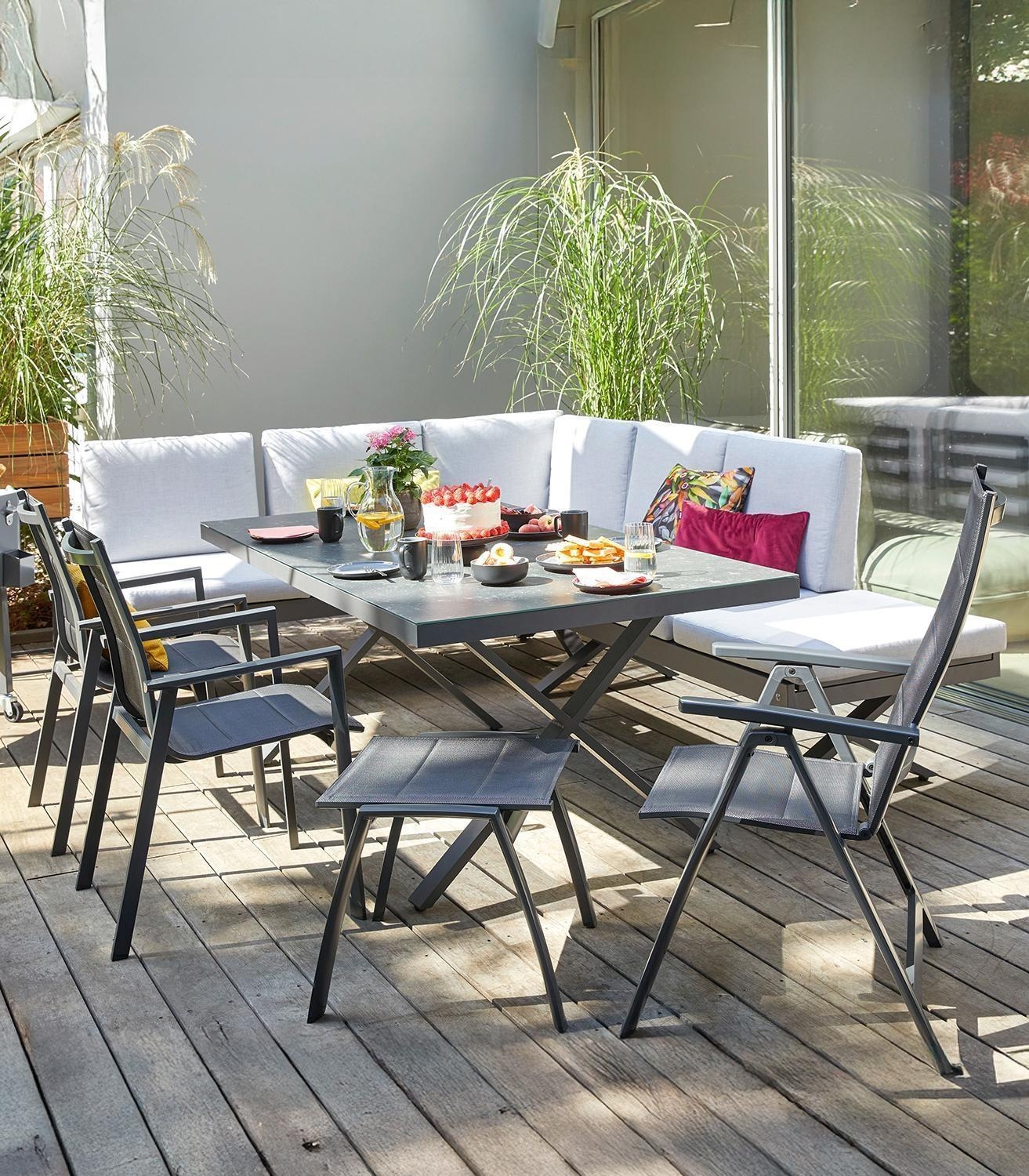 Gartenmöbel aus Aluminium sind besonders pflegeleicht. Aluminium verbindet sehr geringes Gewicht mit Langlebigkeit und hoher Resistenz gegen Witterungseinflüsse. Gartenmöbel aus dem Leichtmetall Aluminium sind aufgrund ihres geringen Gewichts leicht zu handhaben. Das rostfreie Aluminium erhält durch die hochwertige Beschichtung ein edles Oberflächenfinish, welches es unempfindlich gegen Witterungseinflüsse und absolut pflegeleicht macht.