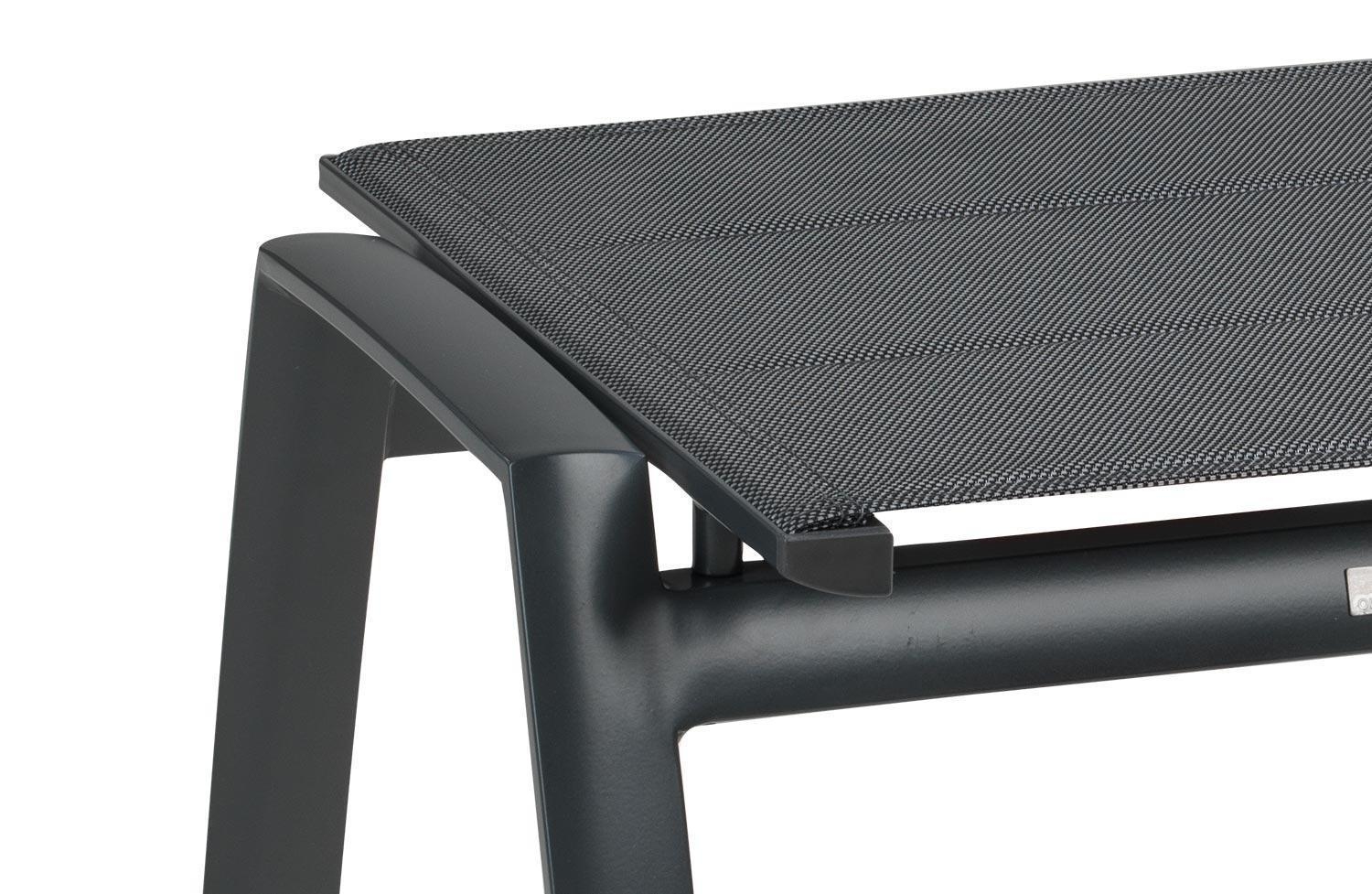 Die Sitz- und Rückenlehnenbespannungen bestehen aus Textilen. Dies ist ein mit PVC umwickeltes Polyestergewebe. Textilen zeichnet sich durch absolute Wetterfestigkeit, hohe UV-Beständigkeit, Farbbeständigkeit sowie Reißfestigkeit aus und ist darüber hinaus schnell trocknend.