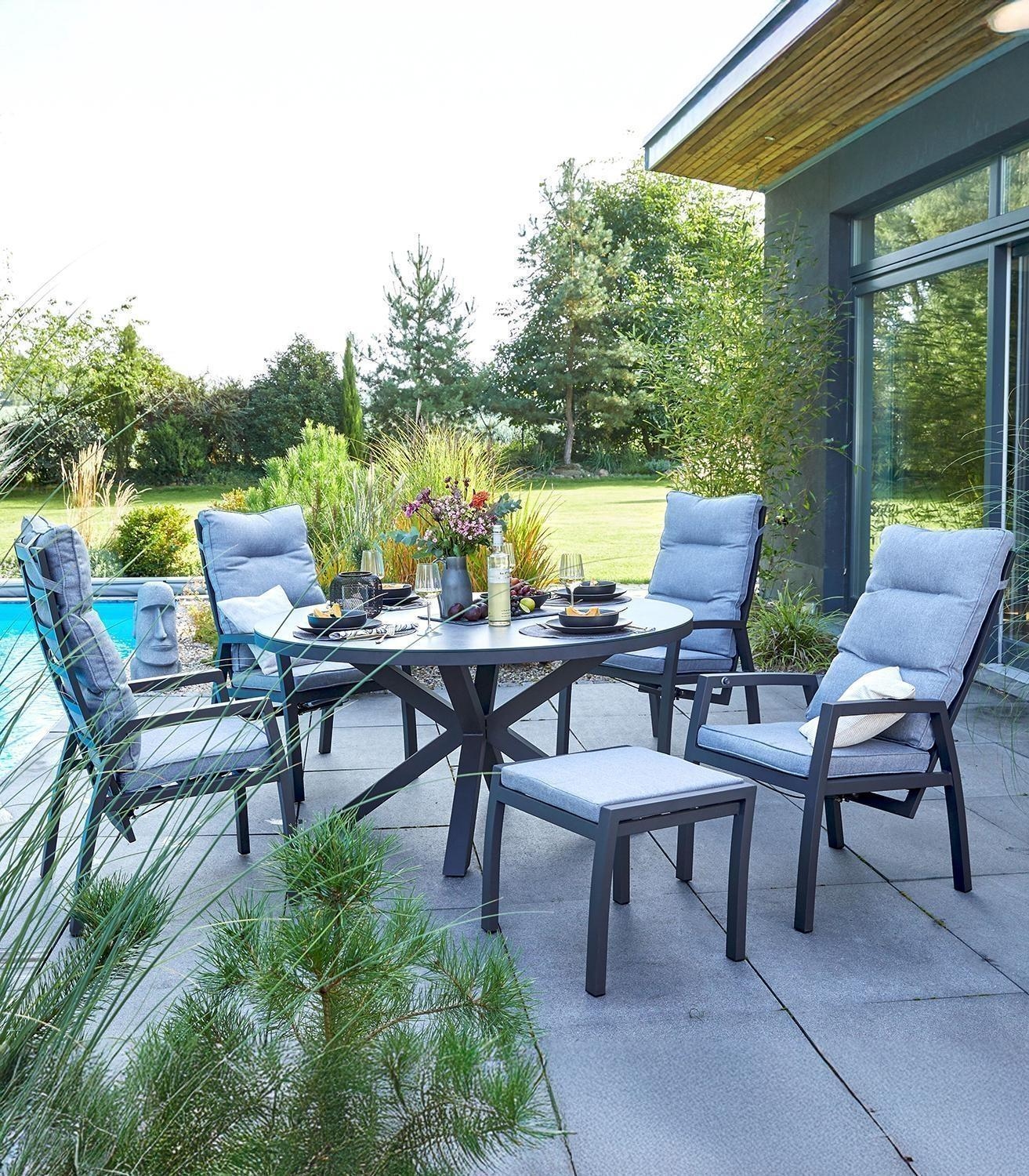 Gartenmöbel aus Aluminium sind besonders pflegeleicht. Aluminium verbindet sehr geringes Gewicht mit Langlebigkeit und hoher Resistenz gegen Witterungseinflüsse. Gartenmöbel aus dem Leichtmetall Aluminium sind aufgrund ihres geringen Gewichts leicht zu handhaben. Das rostfreie Aluminium erhält durch die hochwertige Beschichtung ein edles Oberflächenfinish, welches es unempfindlich gegen Witterungseinflüsse und absolut pflegeleicht macht.