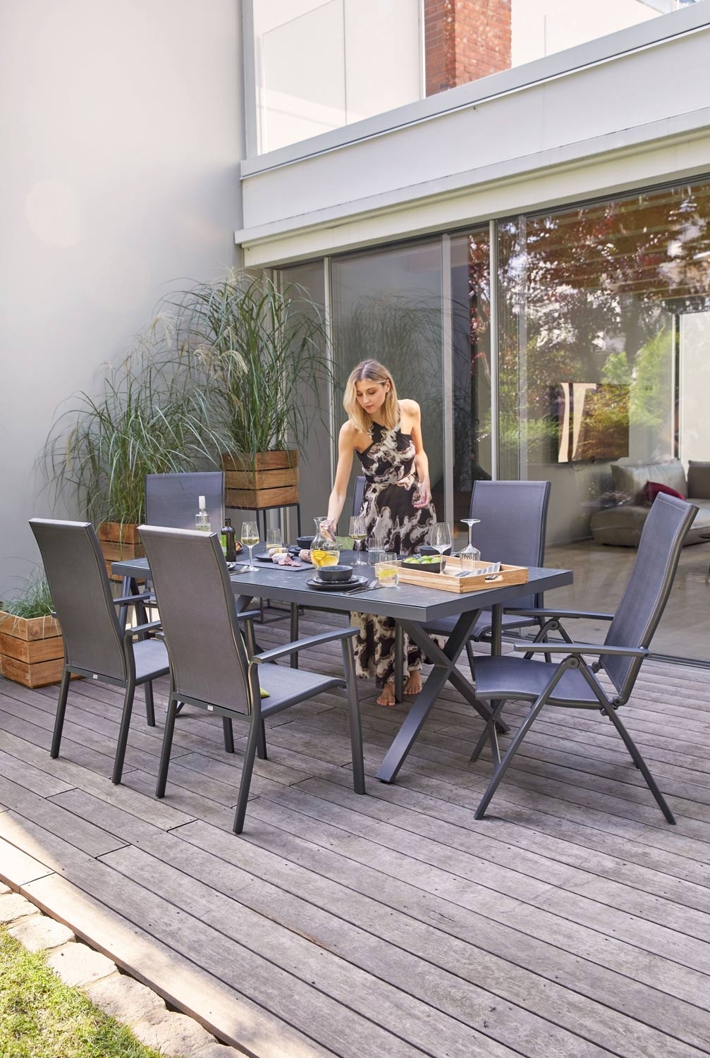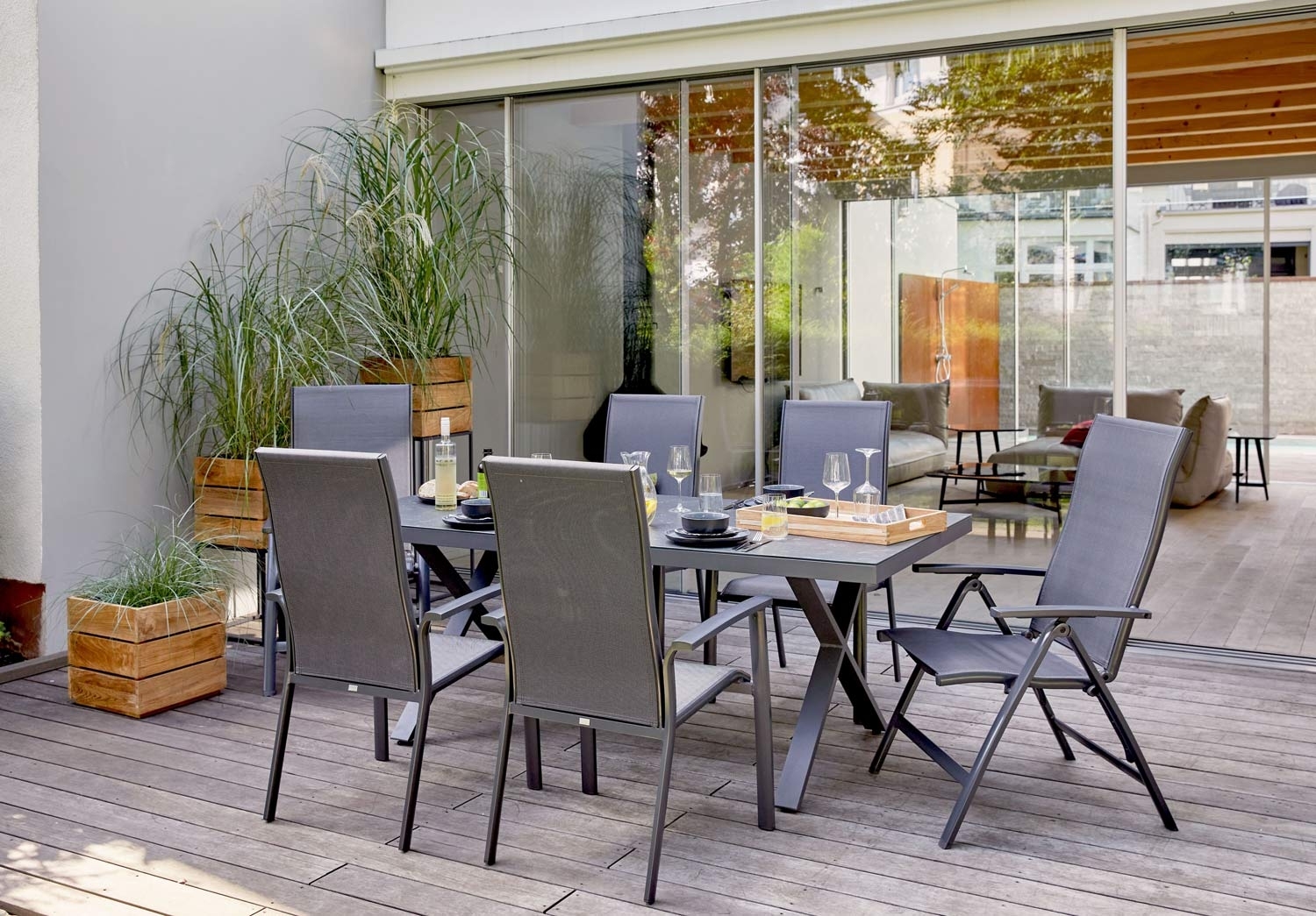 Anthrazit - Grau - Textilen - Aluminiumrahmen - stapelbar