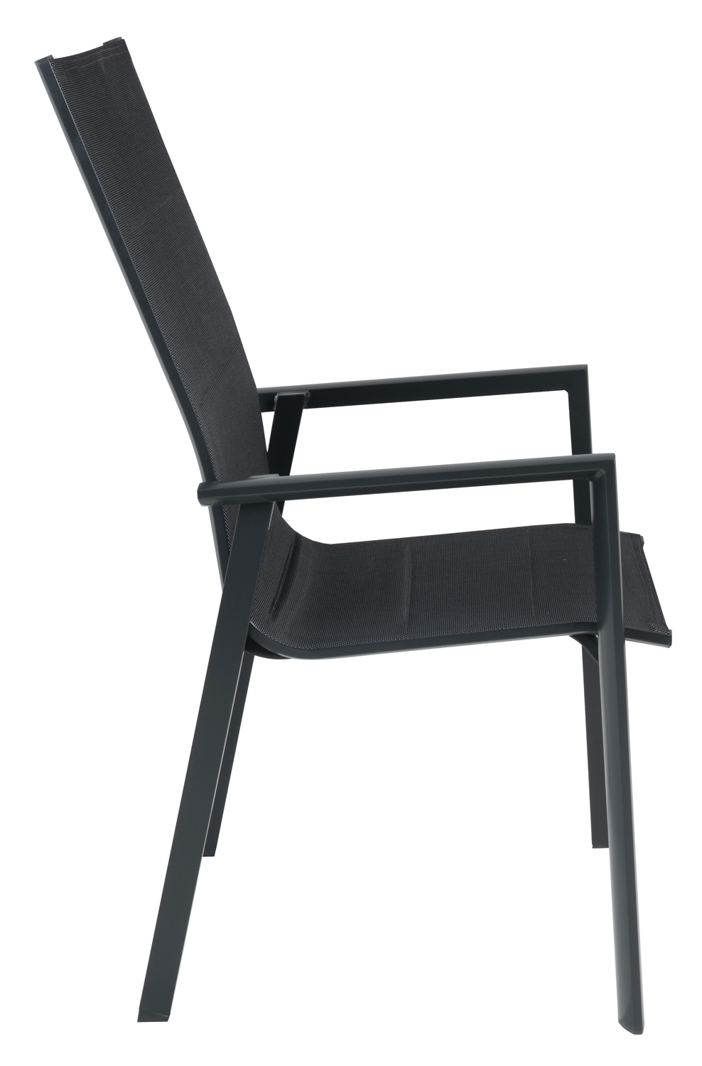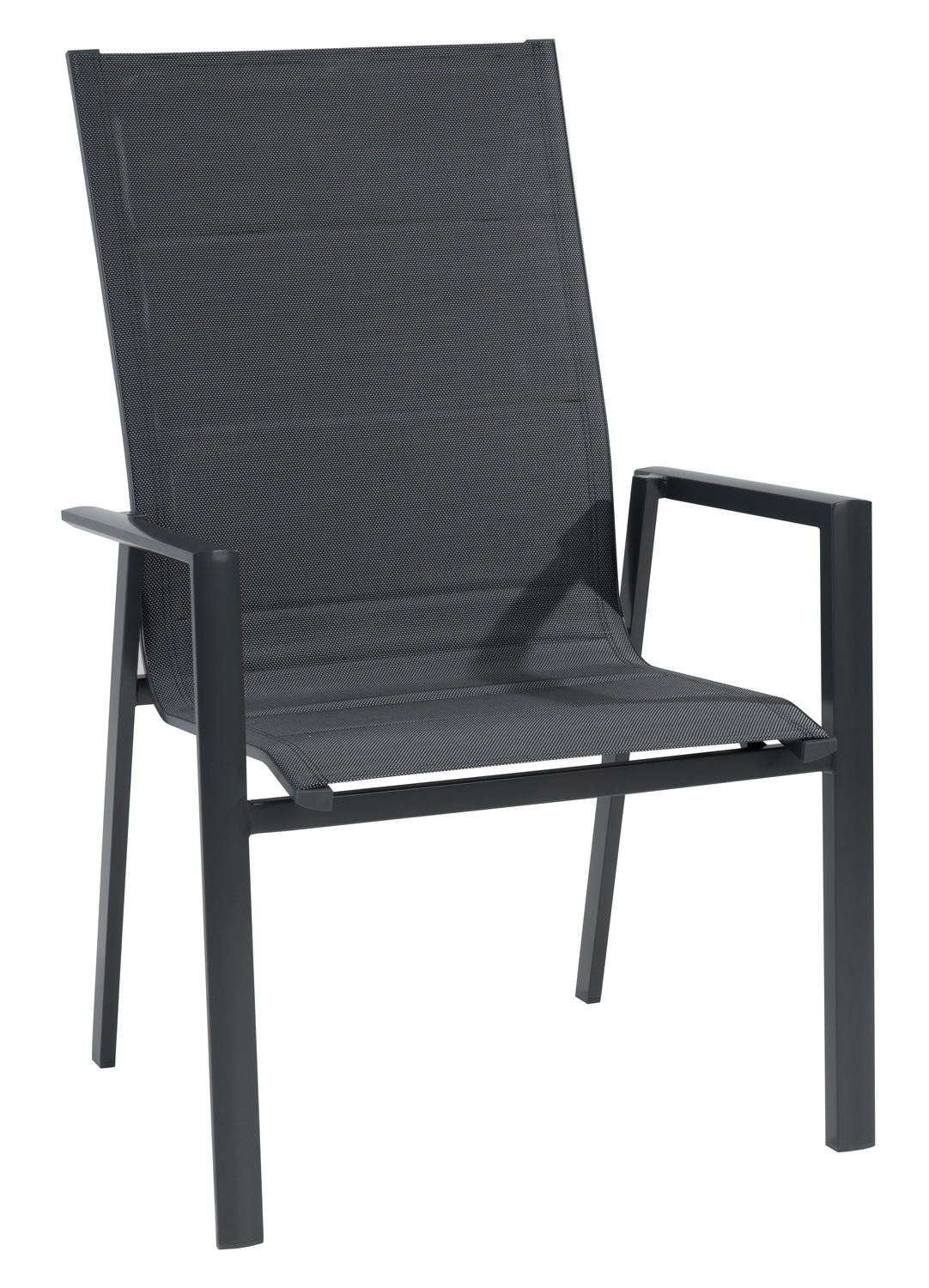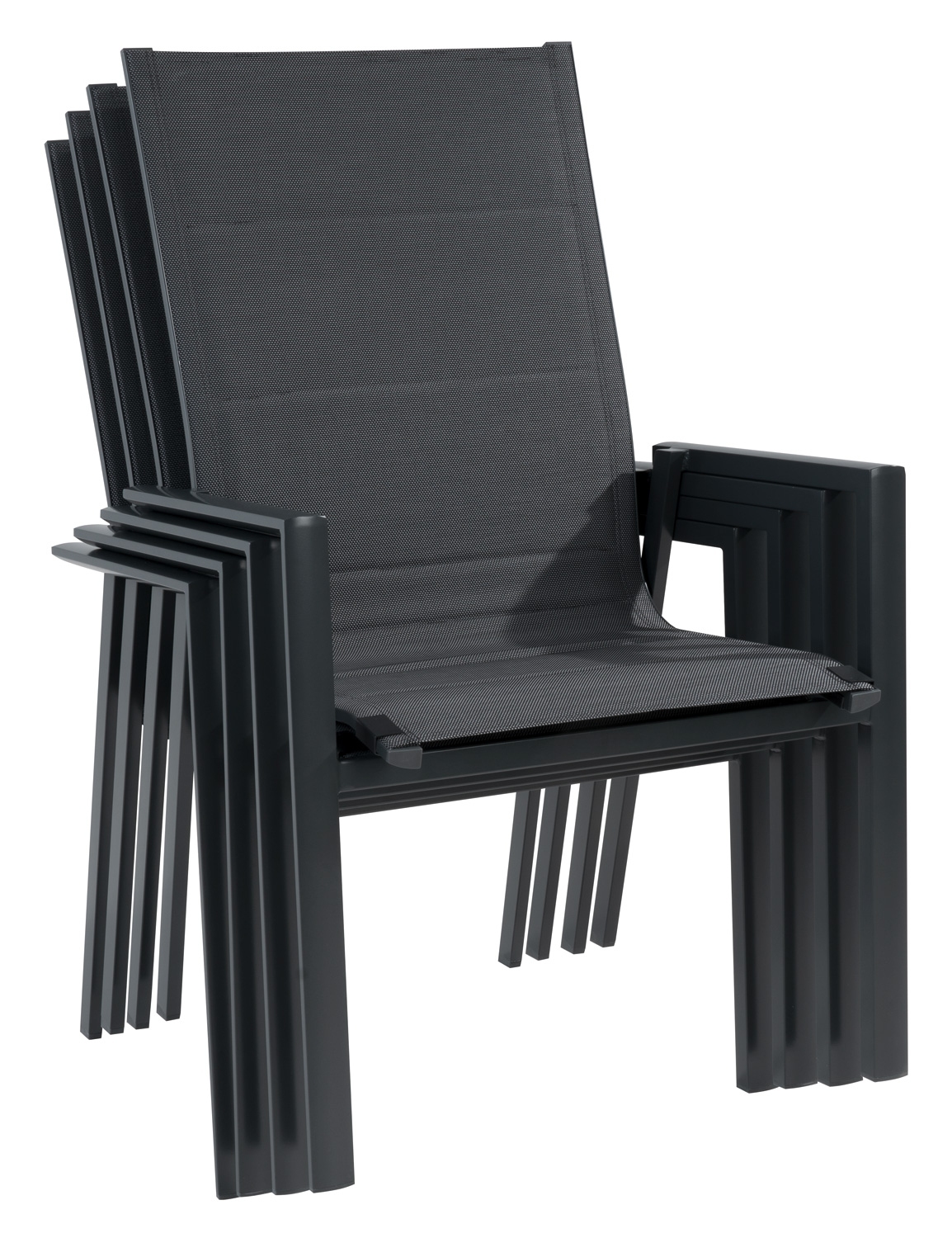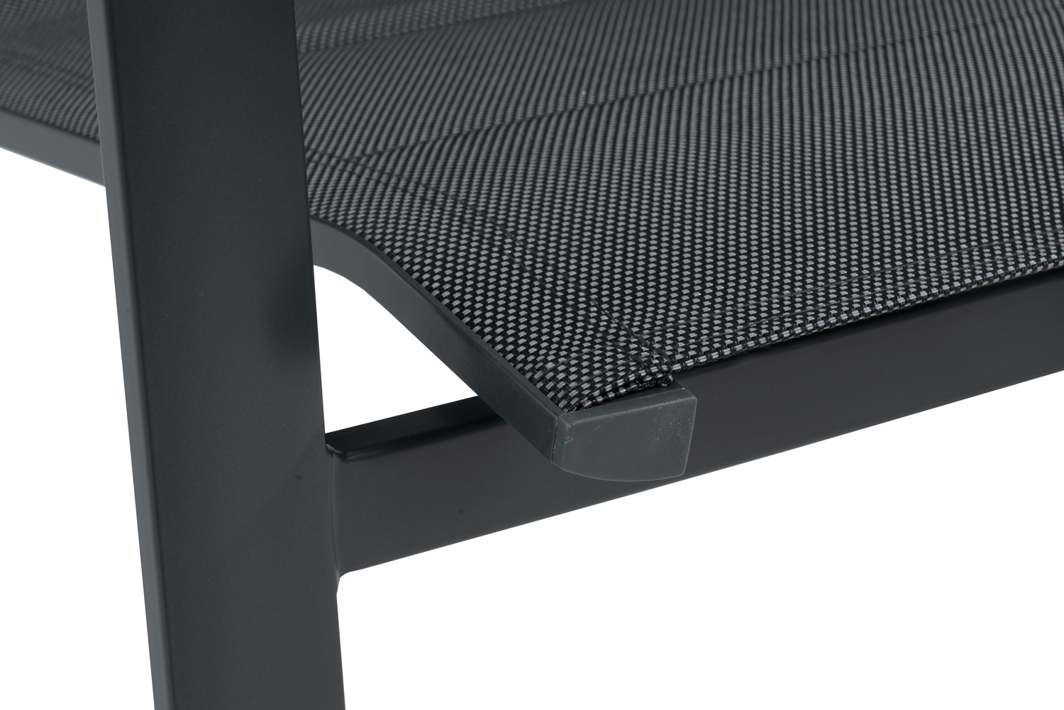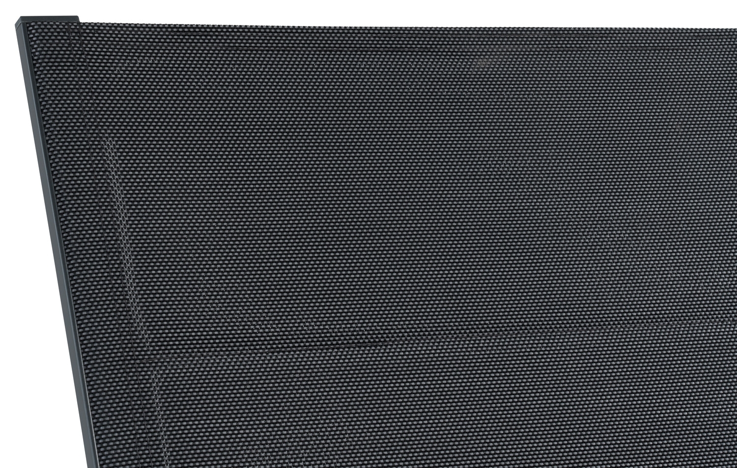 Die Sitz- und Rückenlehnenbespannungen bestehen aus Textilen. Dies ist ein mit PVC umwickeltes Polyestergewebe. Textilen zeichnet sich durch absolute Wetterfestigkeit, hohe UV-Beständigkeit, Farbbeständigkeit sowie Reißfestigkeit aus und ist darüber hinaus schnell trocknend.