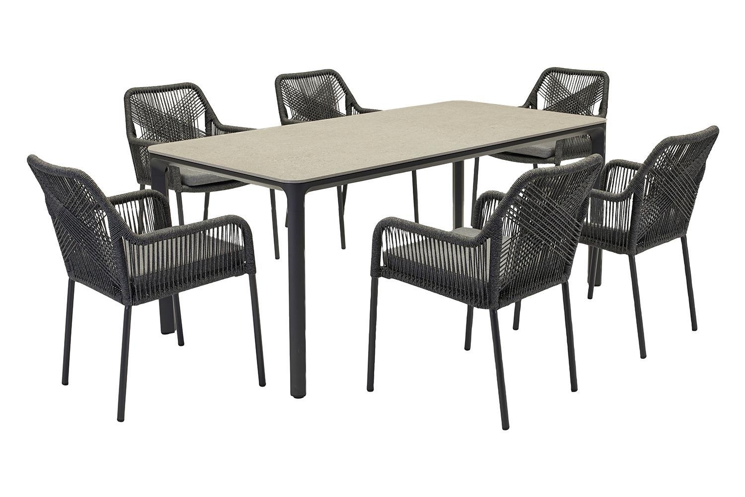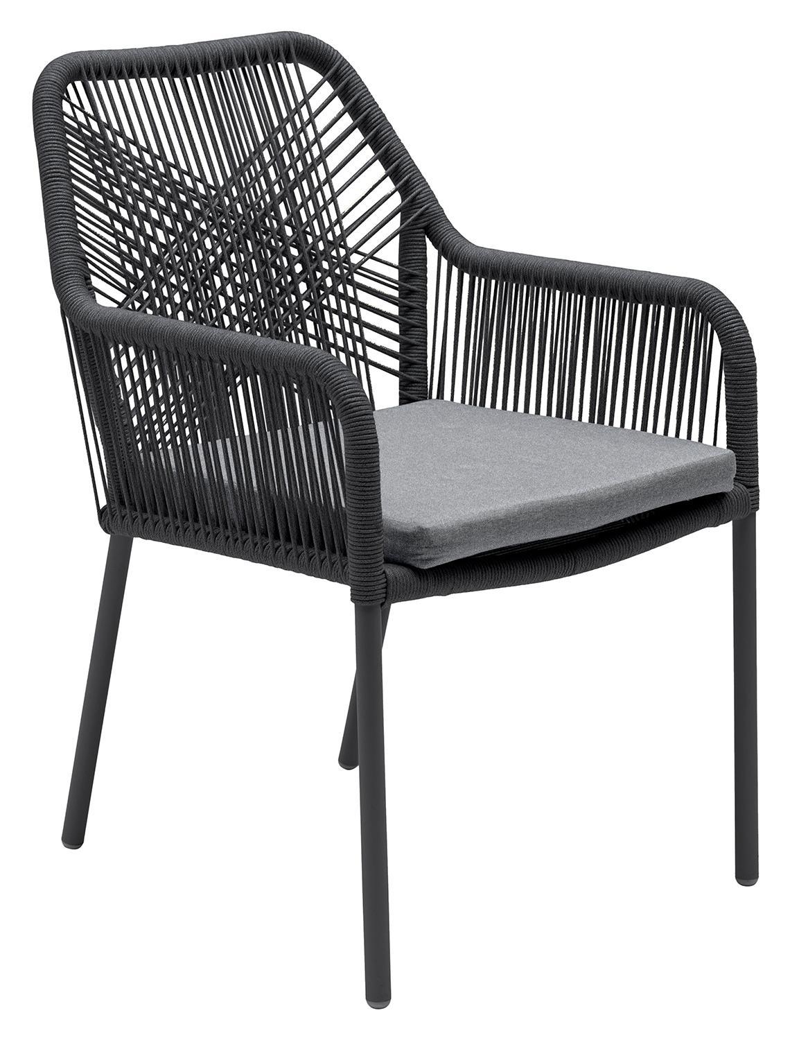 Der Gartenstuhl STILO der Marke outdoor ist mit einem anthrazitfarbenen Aluminiumgestell ausgestattet und verfügt über eine Seiten- sowie Rückenbespannung aus dunkelgrauen Seilen. Dieser Terrassenstuhl weist eine Breite von 56 cm, eine Höhe von 84 cm sowie eine Tiefe von 64 cm auf. Zur Ausstattung gehört ein Sitzkissen, das mit einem grauen Polyesterbezug versehen ist. Aufgrund der gewählten Materialien ist dieser Stuhl für den Außenbereich geeignet, langlebig und witterungsbeständig.