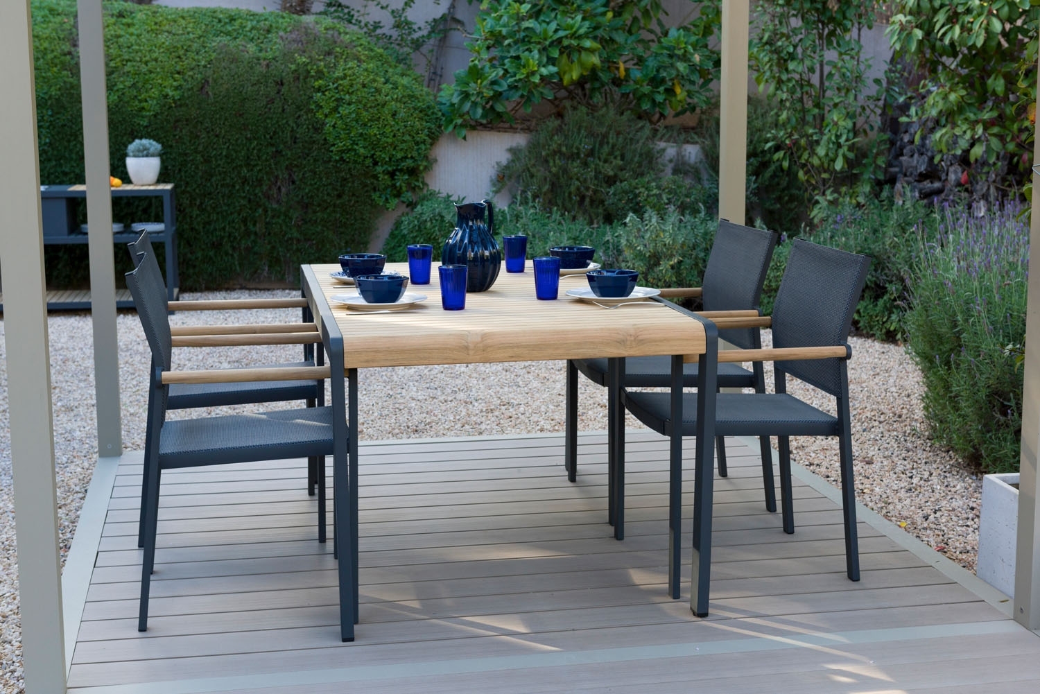 Anthrazit - Textilen - Aluminiumrahmen - Teak - stapelbar