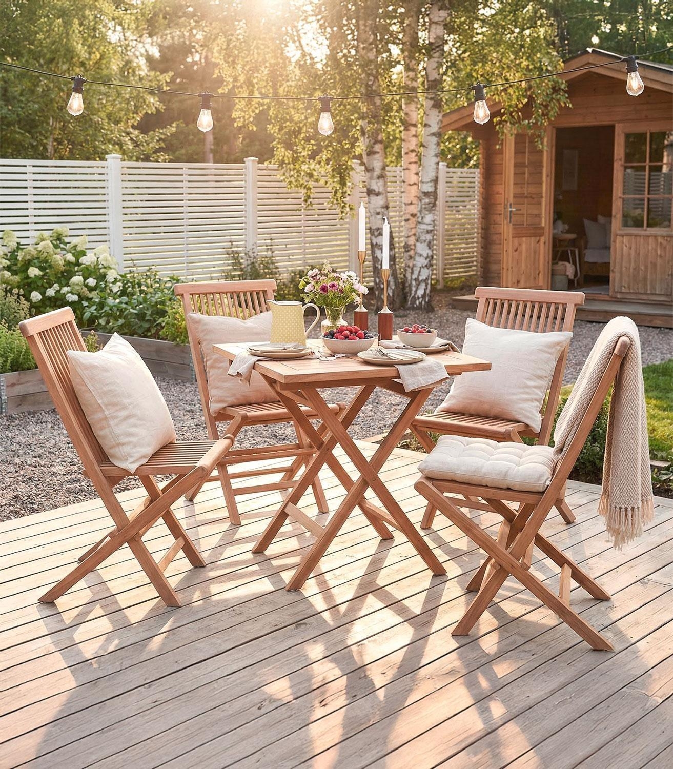 | Lieferumfang: | 1 zusammenklappbarer Gartentisch |