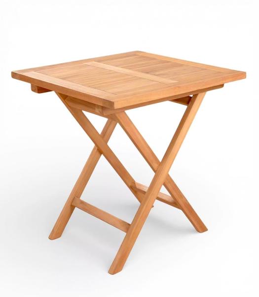Der Gartentisch RIVA der Marke Home4You besteht aus massivem Teakholz in Braun. Er ist für den Außenbereich geeignet und verfügt über eine klappbare Konstruktion, die eine platzsparende Verstauung ermöglicht. Die Maße des Tisches betragen 70 cm in der Breite, 75 cm in der Höhe und 70 cm in der Tiefe.