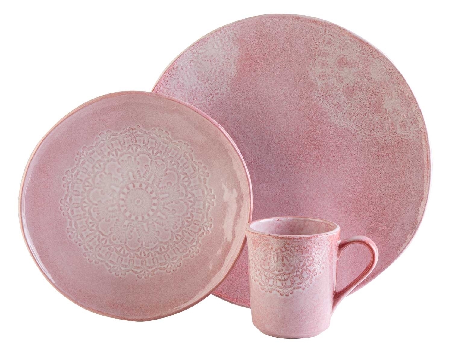 Rosa - Steingut - glasiert - mit floraler Prägung