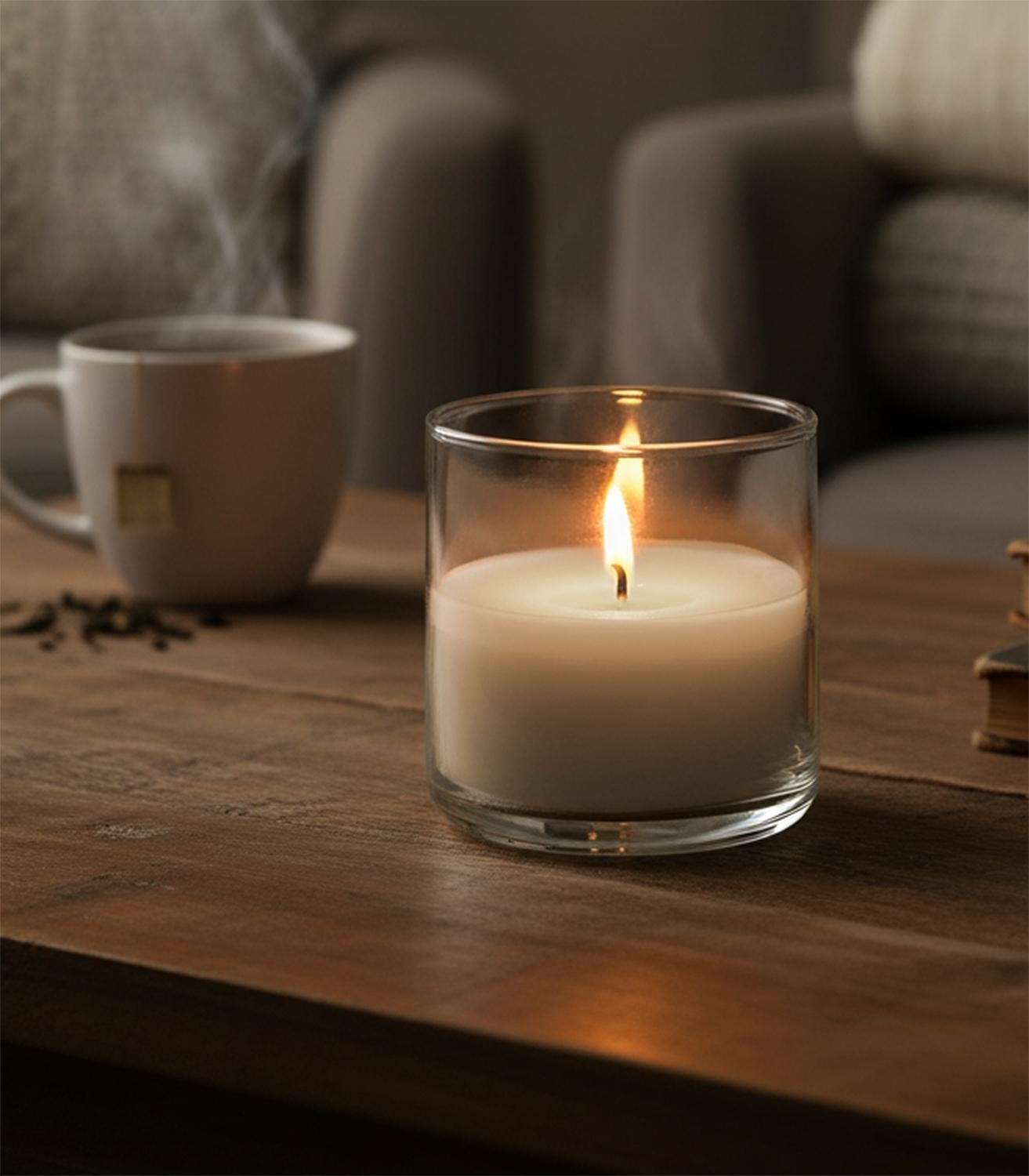 Ø 7 x H 8 cm - Grau - Glas - Paraffinwachs - selbstlöschend