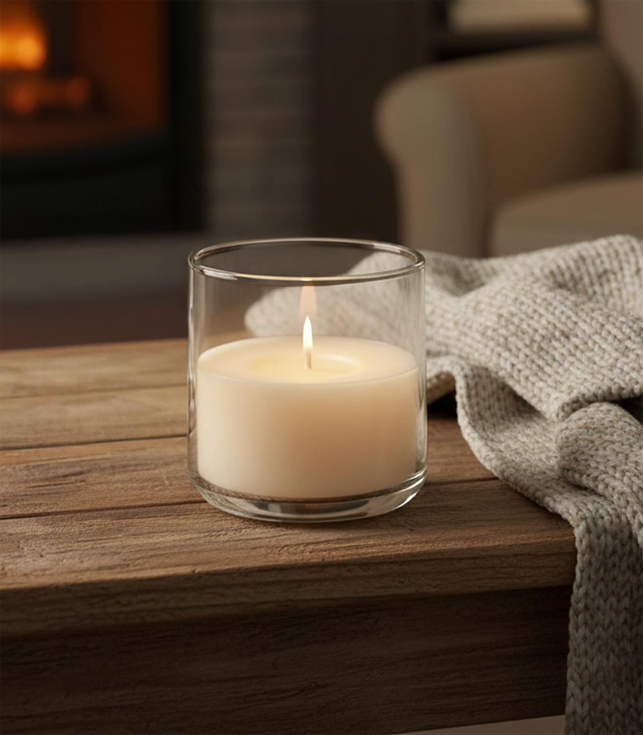 Ø 7 x H 8 cm - Creme - Glas - Paraffinwachs - selbstlöschend