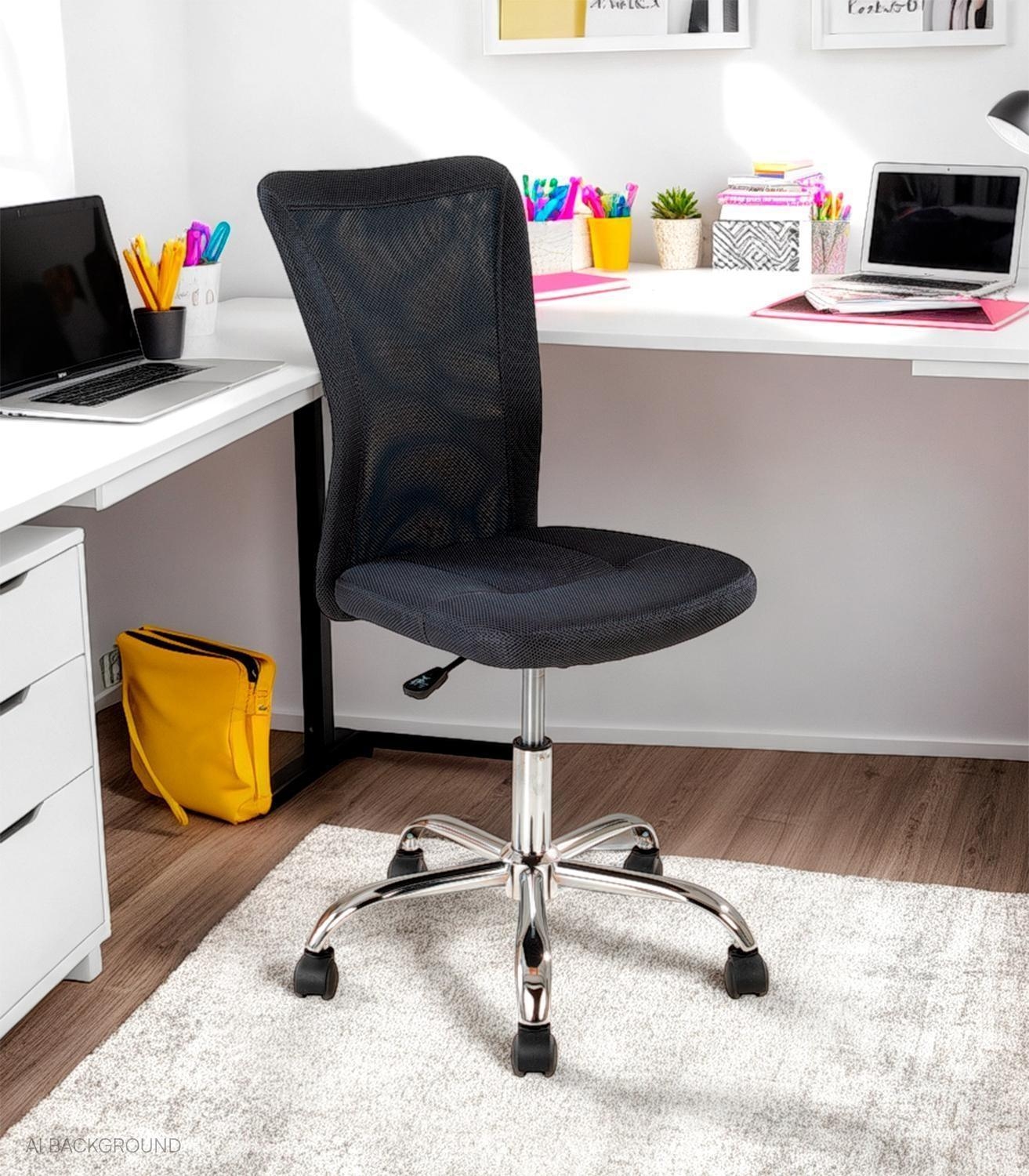 Der Kinderdrehstuhl DION der Marke Home4You verfügt über einen anthrazitfarbenen Meshbezug und ein robustes Gestell aus Chrom. Für angenehmen Sitzkomfort sorgt eine Schaumstoffpolsterung in der Sitzfläche. Die Sitzhöhe lässt sich stufenlos zwischen 44 cm und 53 cm verstellen. Ausgestattet ist der Stuhl mit fünf leichtgängigen Nylonrollen. Die Gesamtmaße betragen 62 cm in der Breite, 87,5 cm in der Höhe und 65 cm in der Tiefe. Die Sitzfläche misst 41 cm in der Breite und 44 cm in der Tiefe.