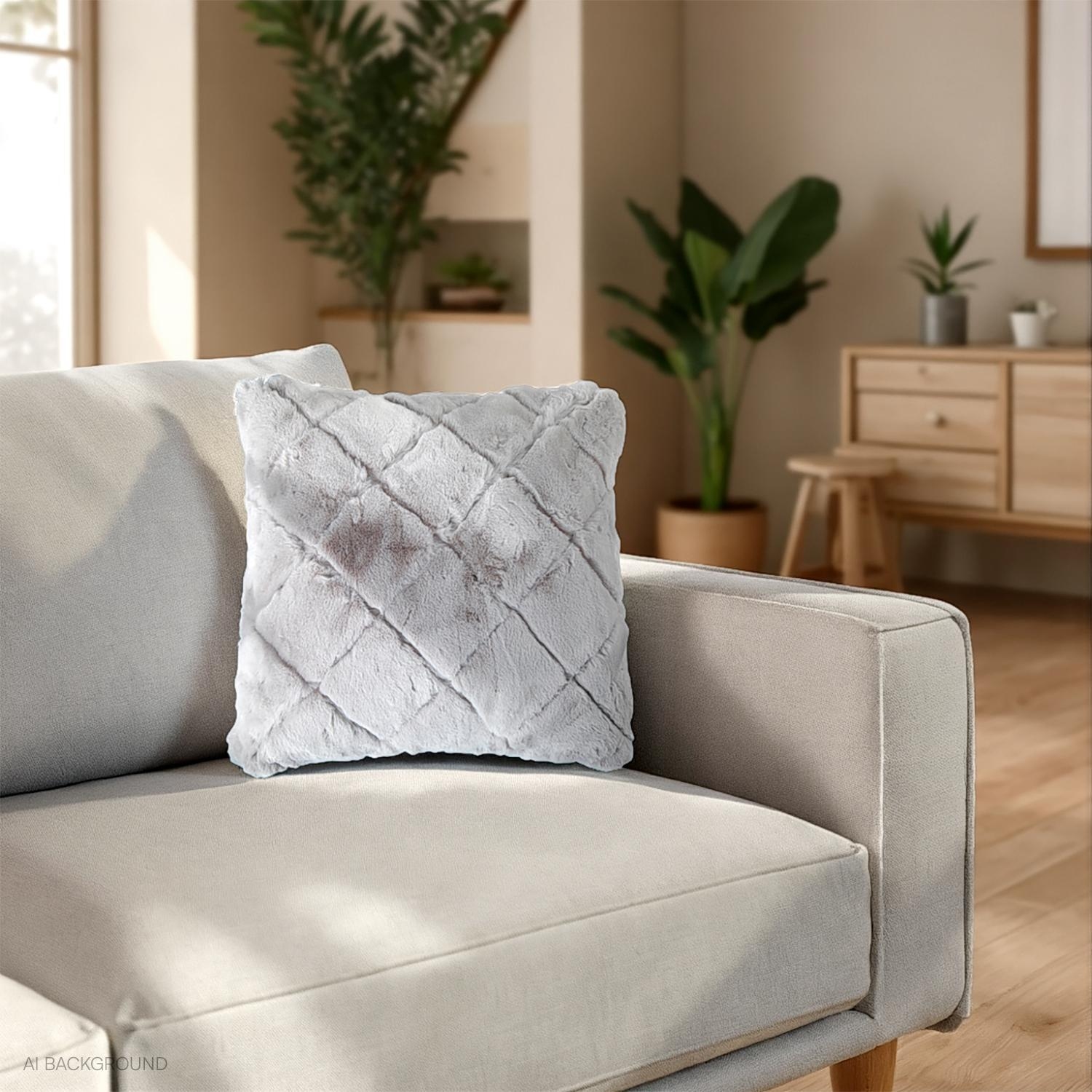 50 x 50 cm - Grau - Kunstfell - Velours - mit Reißverschluss
