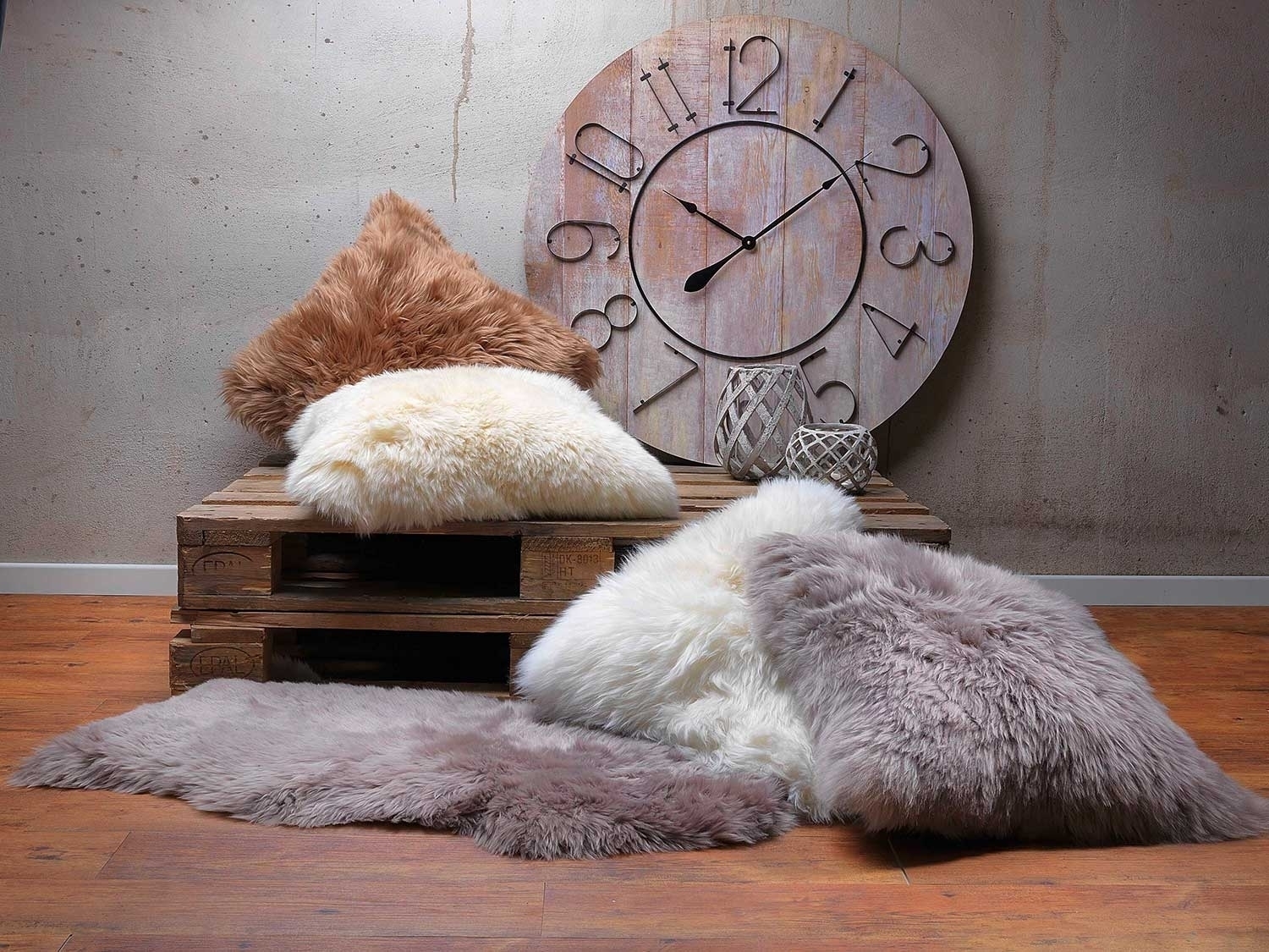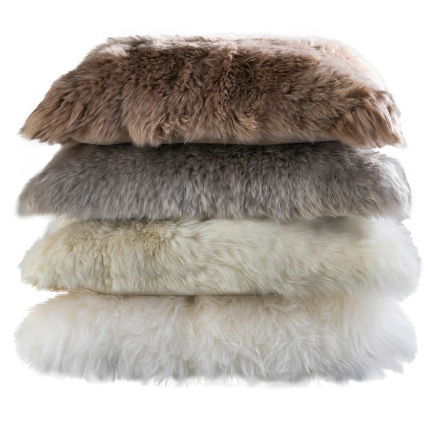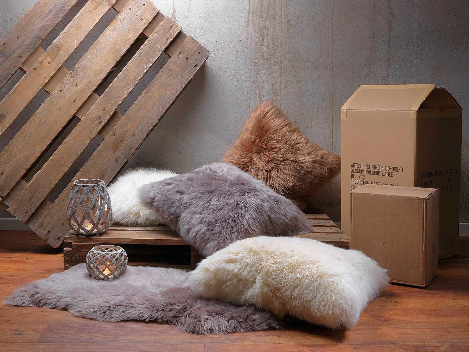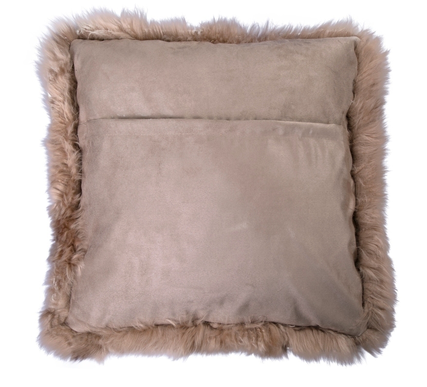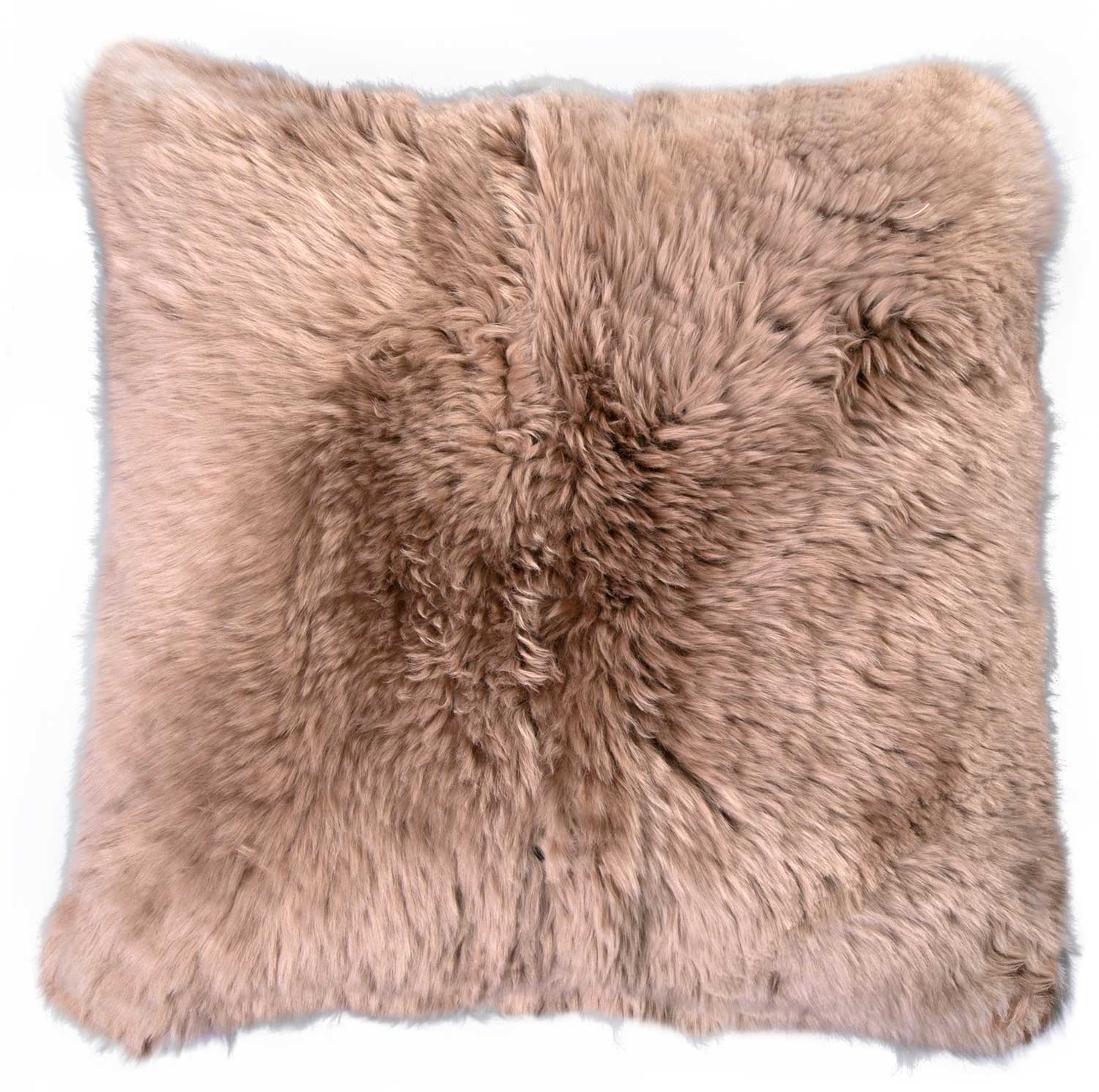 Taupe - echtes Schaffell - Polyester - 50 x 50 cm - mit Reißverschluss