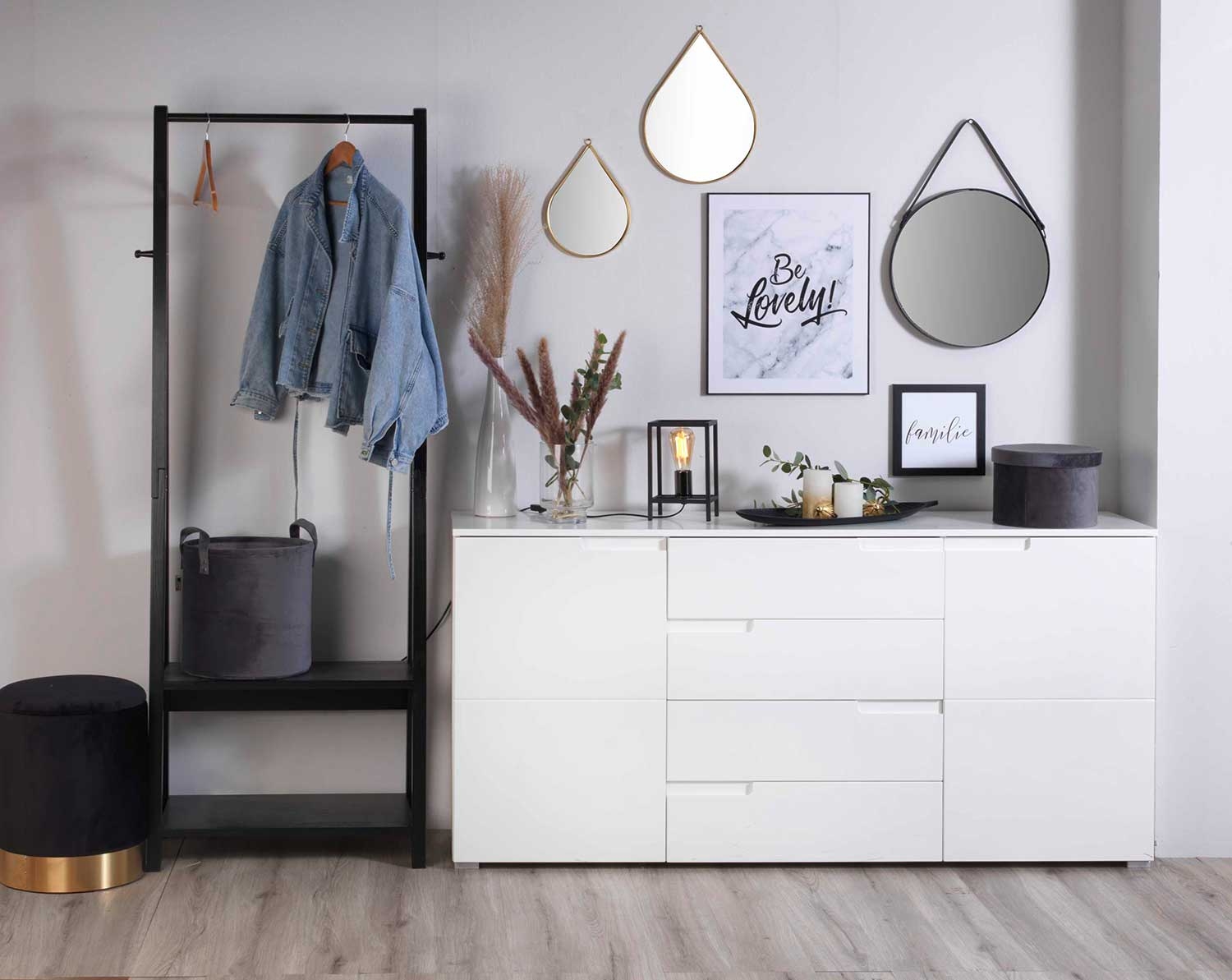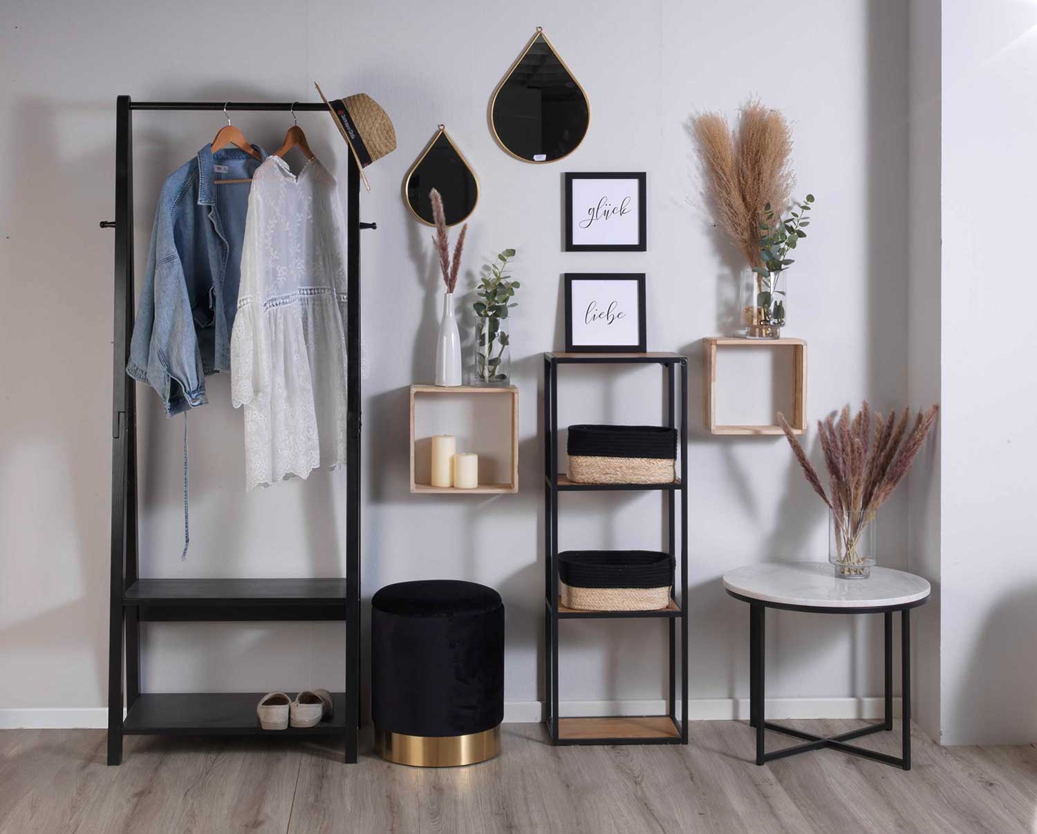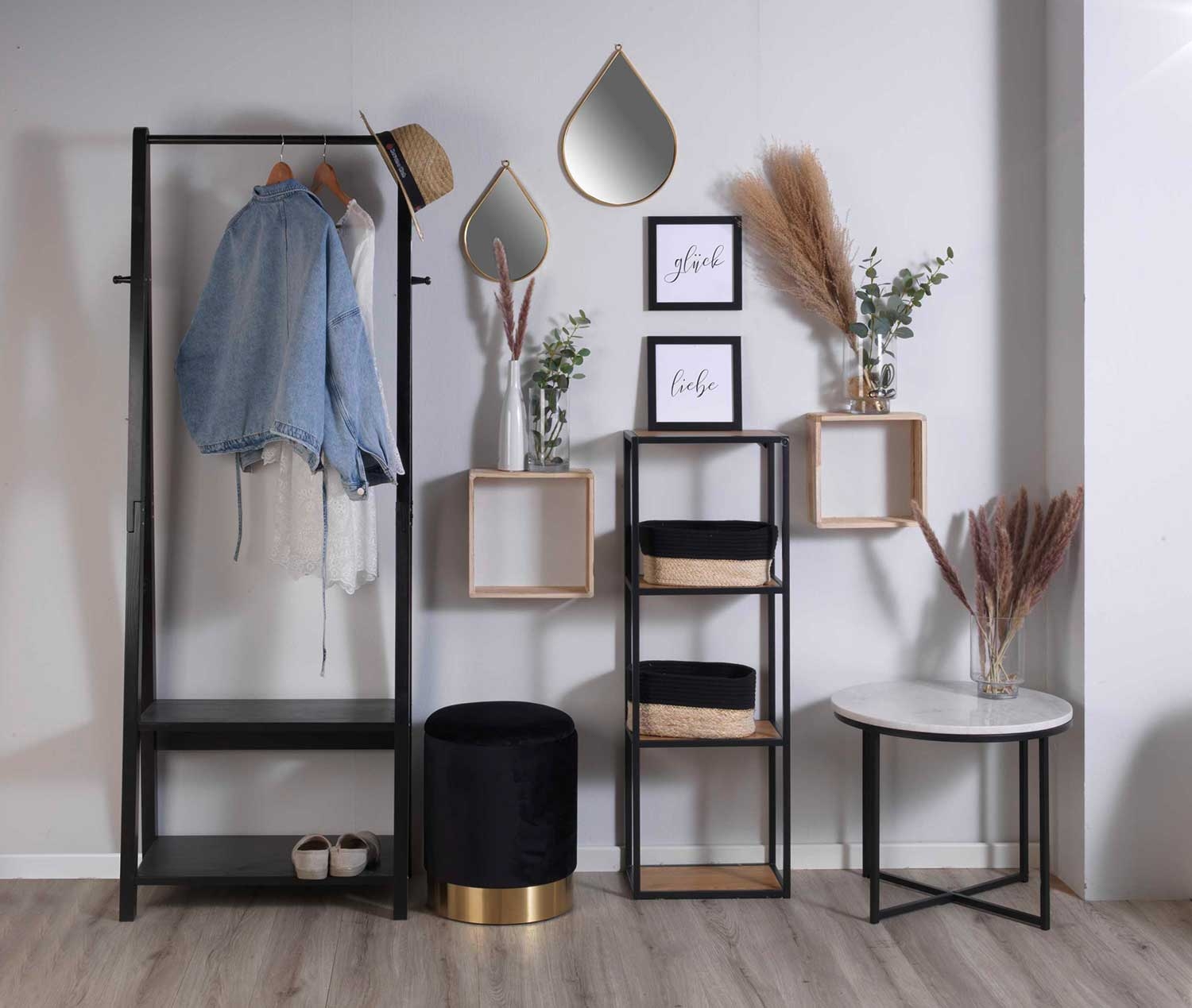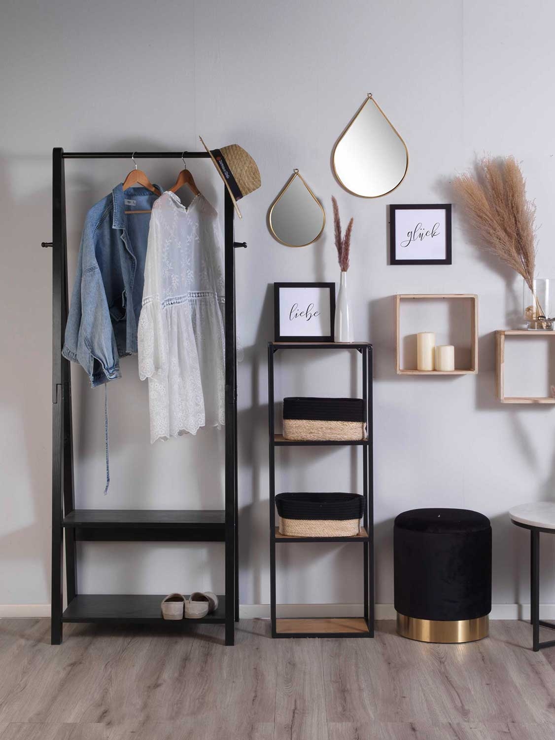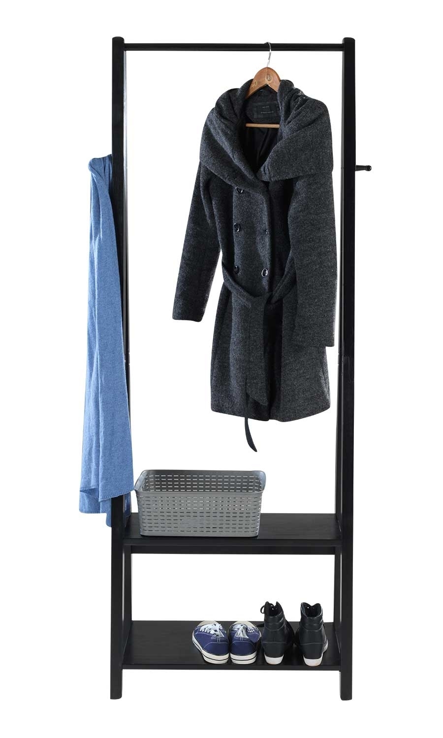 Der Home4YouKleiderständer ist eine praktische und stilvolle Lösung für die Aufbewahrung Ihrer Kleidung und Accessoires. Dieser Kleiderständer ist in elegantem Schwarz gehalten und verfügt über eine Größe von 65 x 180 cm, was ausreichend Platz für Ihre Kleidung bietet. Hergestellt aus hochwertigem Kiefernholz, ist dieser Kleiderständer nicht nur robust, sondern verleiht Ihrem Raum auch einen natürlichen und warmen Charme. Mit seinen zwei Ablagen bietet er zusätzlichen Stauraum für Schuhe, Taschen oder andere Accessoires.