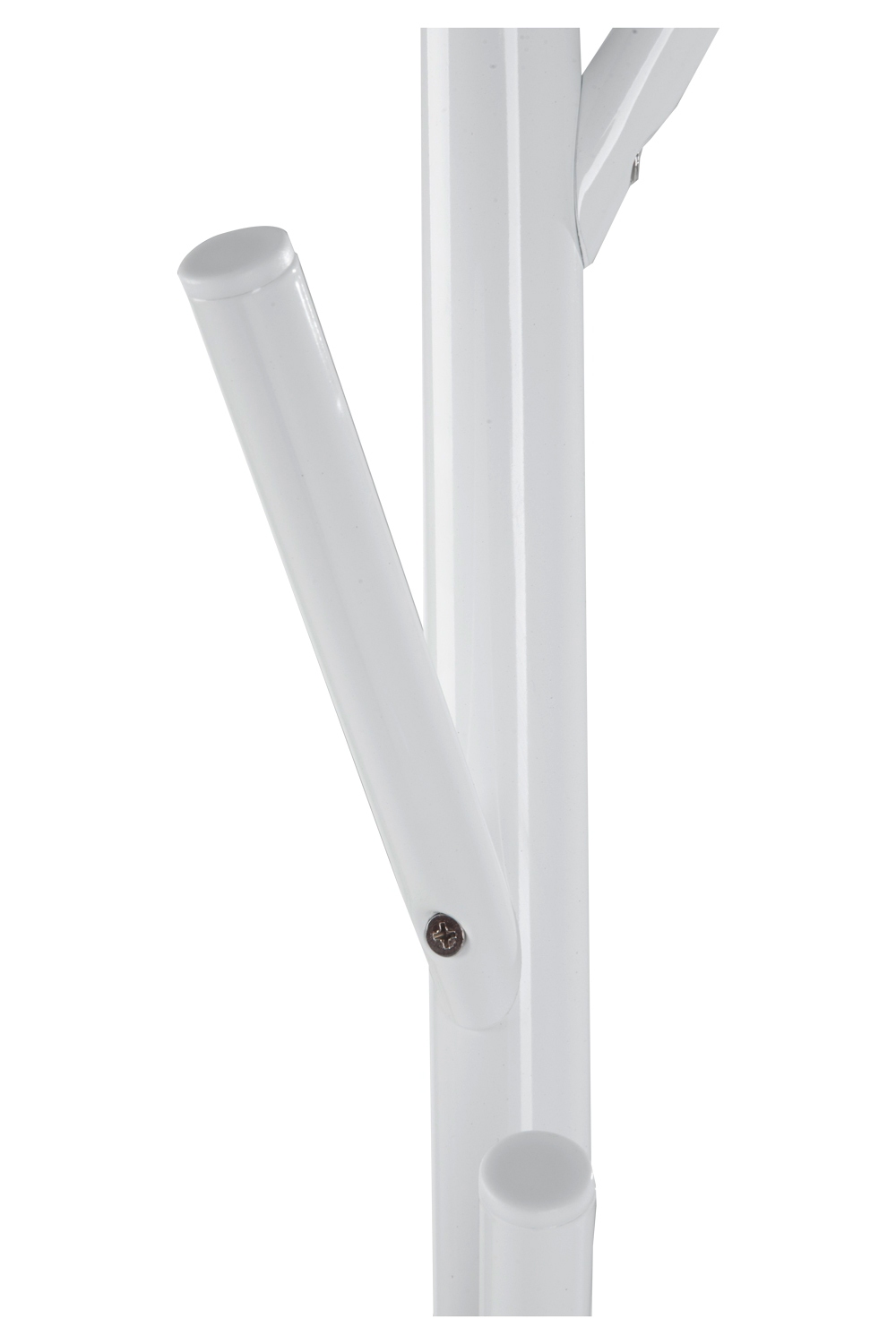 Der Kleiderständer von Home4You präsentiert sich in strahlendem Weiß, gefertigt aus hochwertigem lackierten Metall. Mit einem Durchmesser von 28 cm und einer Höhe von 170 cm bietet er ausreichend Platz für Kleidungsstücke. Ausgestattet mit 5 Haken bietet er eine praktische Aufbewahrungslösung für Jacken, Mäntel und andere Kleidungsstücke.