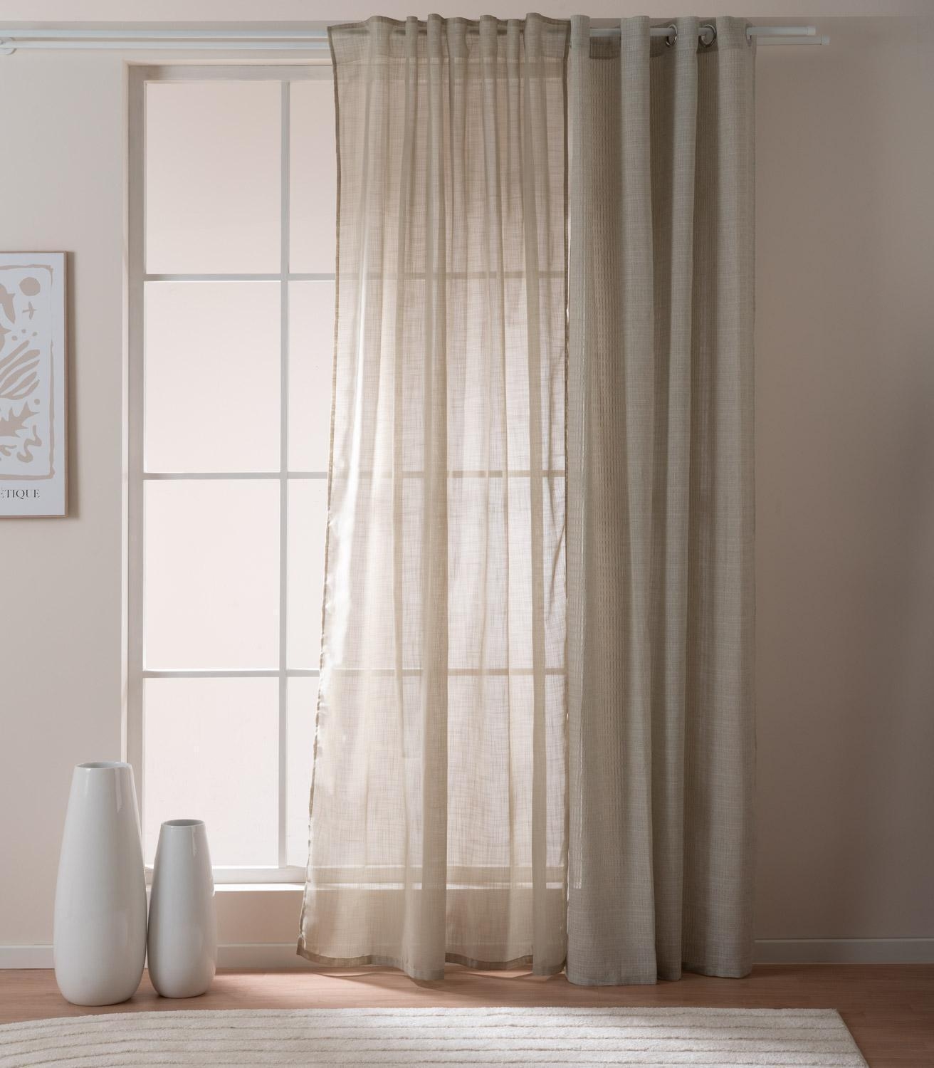Der Ösenschal VANDA von Home4You in Greige überzeugt mit seinem zeitlosen Design und dezenten Querstreifen. Mit einer Größe von 140 x 245 cm eignet er sich ideal für Wohn- und Schlafräume. Das pflegeleichte Polyester sorgt für eine angenehme Haptik und eine lange Lebensdauer. Der Schal ist bei 60 °C waschbar und bügelgeeignet, jedoch nicht für den Trockner geeignet. Durch die praktischen Ösen lässt er sich einfach und schnell aufhängen.