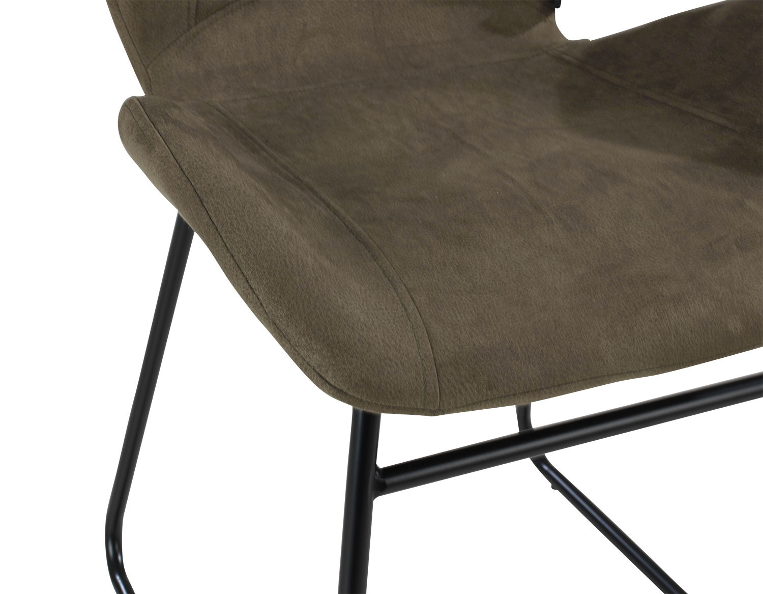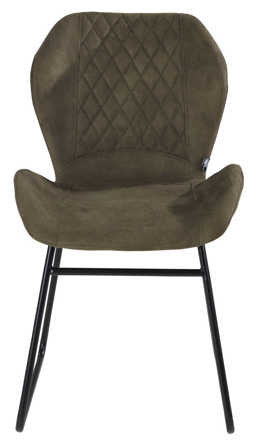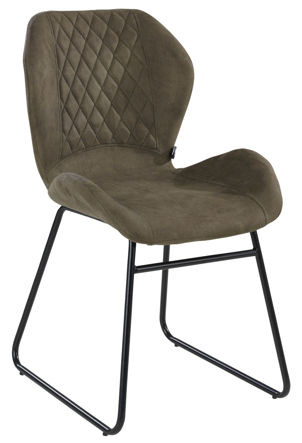 Der Polsterstuhl der Marke Home4You wird einzeln geliefert. Er ist in Khakifarben erhältlich und verfügt über einen schwarzen Mikrofaserbezug. Das Gestell des Stuhls ist aus Metall gefertigt. Die Abmessungen des Stuhls betragen 48 cm in der Breite, 82 cm in der Höhe und 48 cm in der Tiefe. Die Sitzfläche ist 48 cm breit, 44 cm hoch und 42 cm tief. Der Stuhl besteht aus Schaumstoff und der Bezug aus 100% Polyester. Der Stuhl ist bis maximal 120 kg belastbar. Die Rückenlehne ist steif, federt nicht mit, und gibt somit einen festen Halt wenn man sich zurücklehnt.
