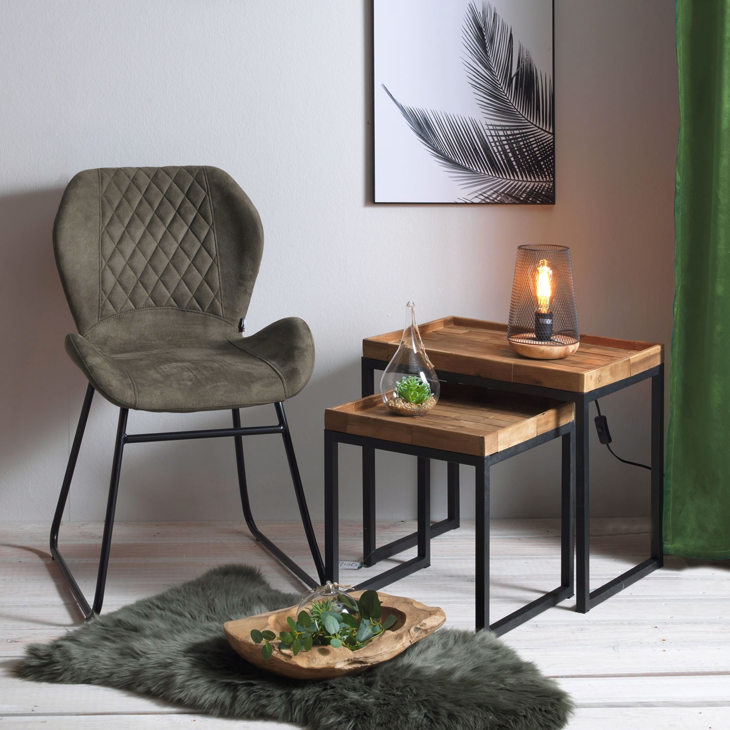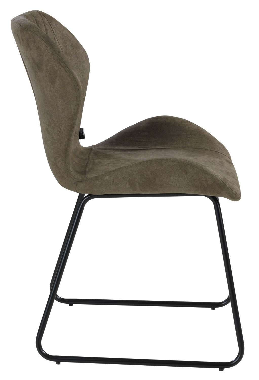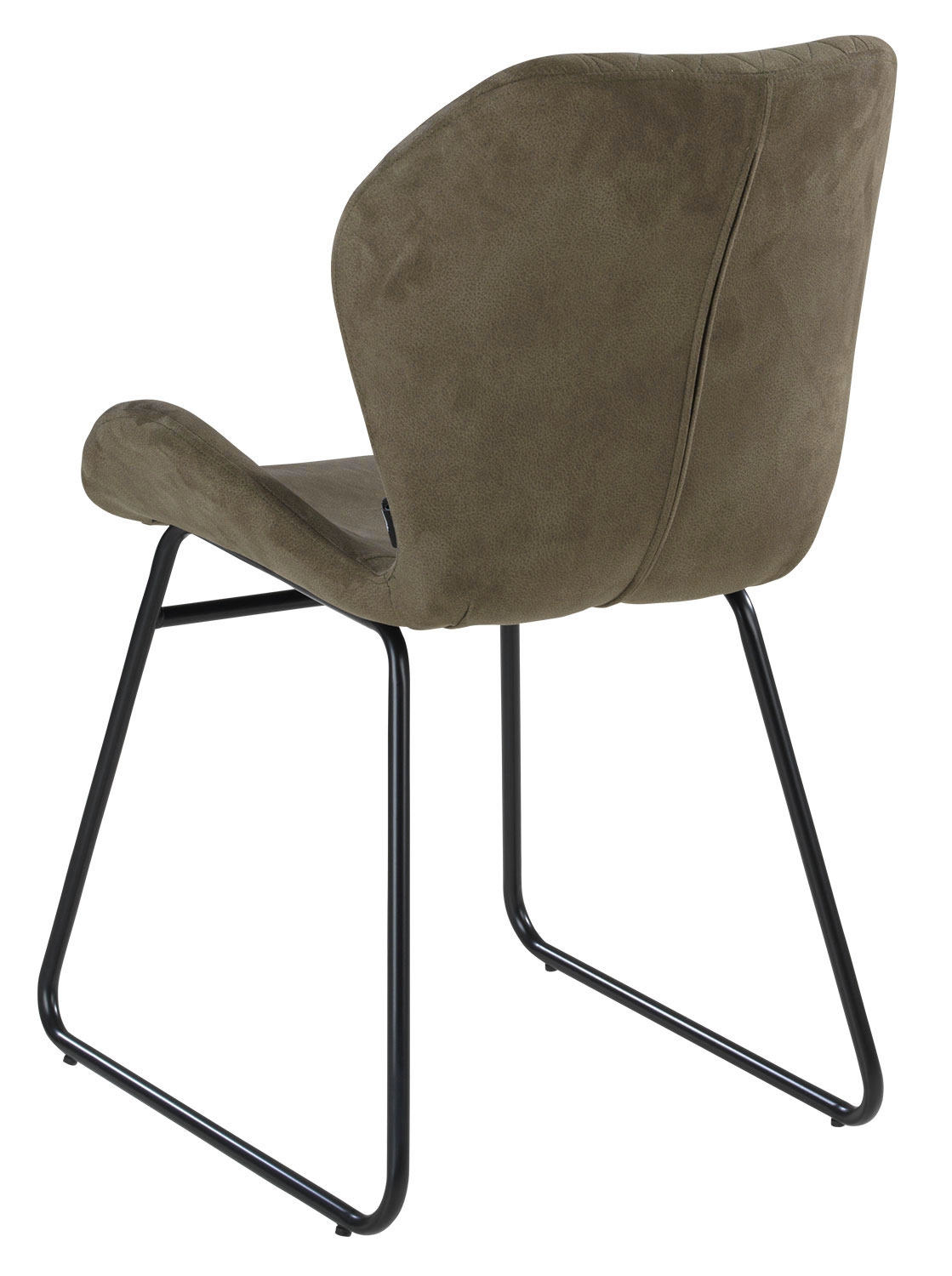 Der Polsterstuhl der Marke Home4You wird einzeln geliefert. Er ist in Khakifarben erhältlich und verfügt über einen schwarzen Mikrofaserbezug. Das Gestell des Stuhls ist aus Metall gefertigt. Die Abmessungen des Stuhls betragen 48 cm in der Breite, 82 cm in der Höhe und 48 cm in der Tiefe. Die Sitzfläche ist 48 cm breit, 44 cm hoch und 42 cm tief. Der Stuhl besteht aus Schaumstoff und der Bezug aus 100% Polyester. Der Stuhl ist bis maximal 120 kg belastbar. Die Rückenlehne ist steif, federt nicht mit, und gibt somit einen festen Halt wenn man sich zurücklehnt.