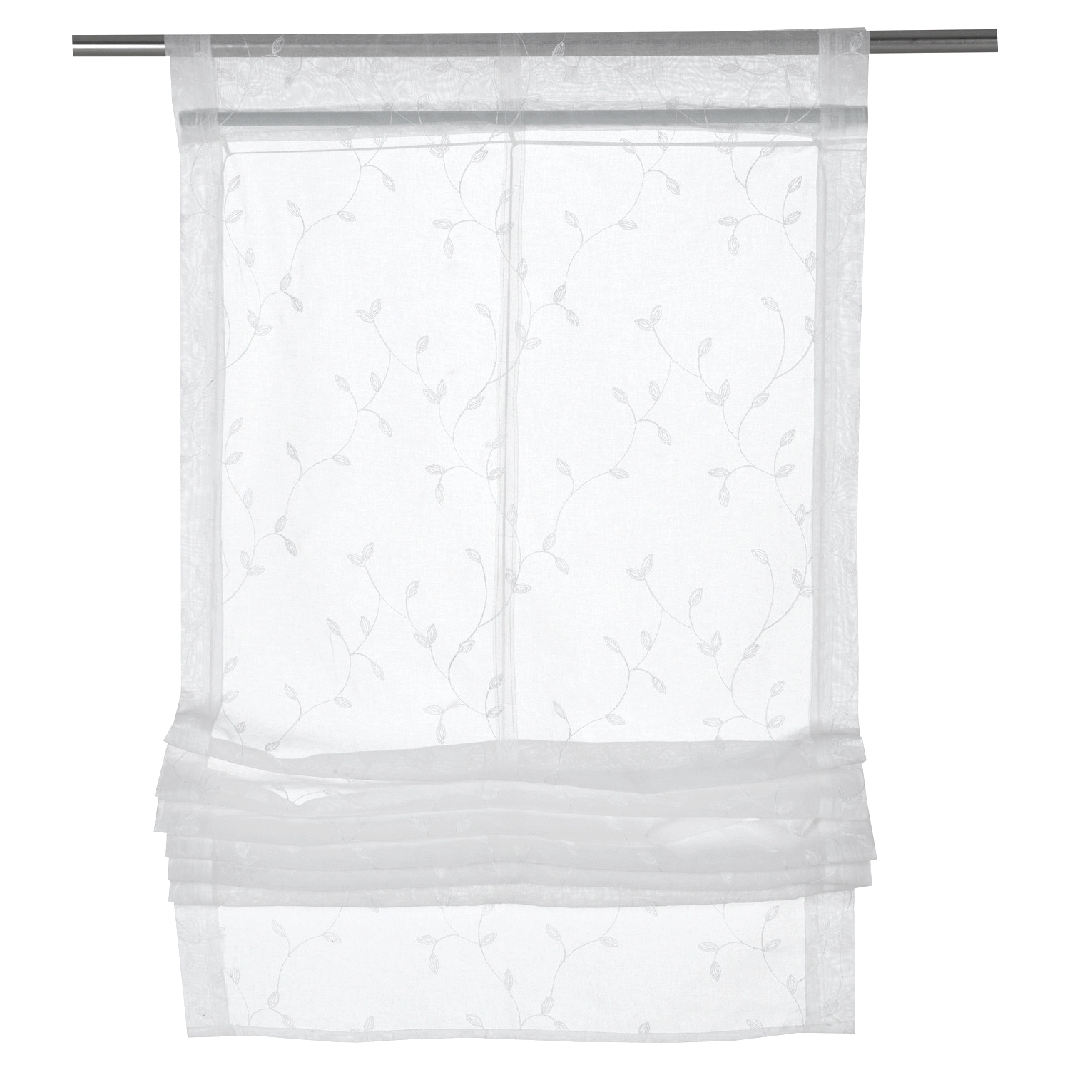 Das Raffrollo von Home4You in der Größe 60 x 170 cm überzeugt durch sein elegantes Design in Weiß mit Blättermotiven. Gefertigt aus hochwertigem Polyester, ist es transparent und ideal für helle Räume geeignet. Die praktische Aufhängung erfolgt über einen Tunnelzug, was eine einfache und flexible Montage ermöglicht. Dieses stilvolle Raffrollo verleiht jedem Raum eine moderne und leichte Atmosphäre.