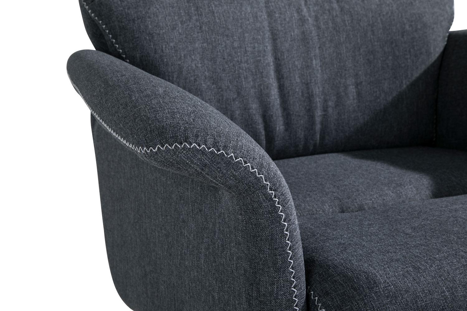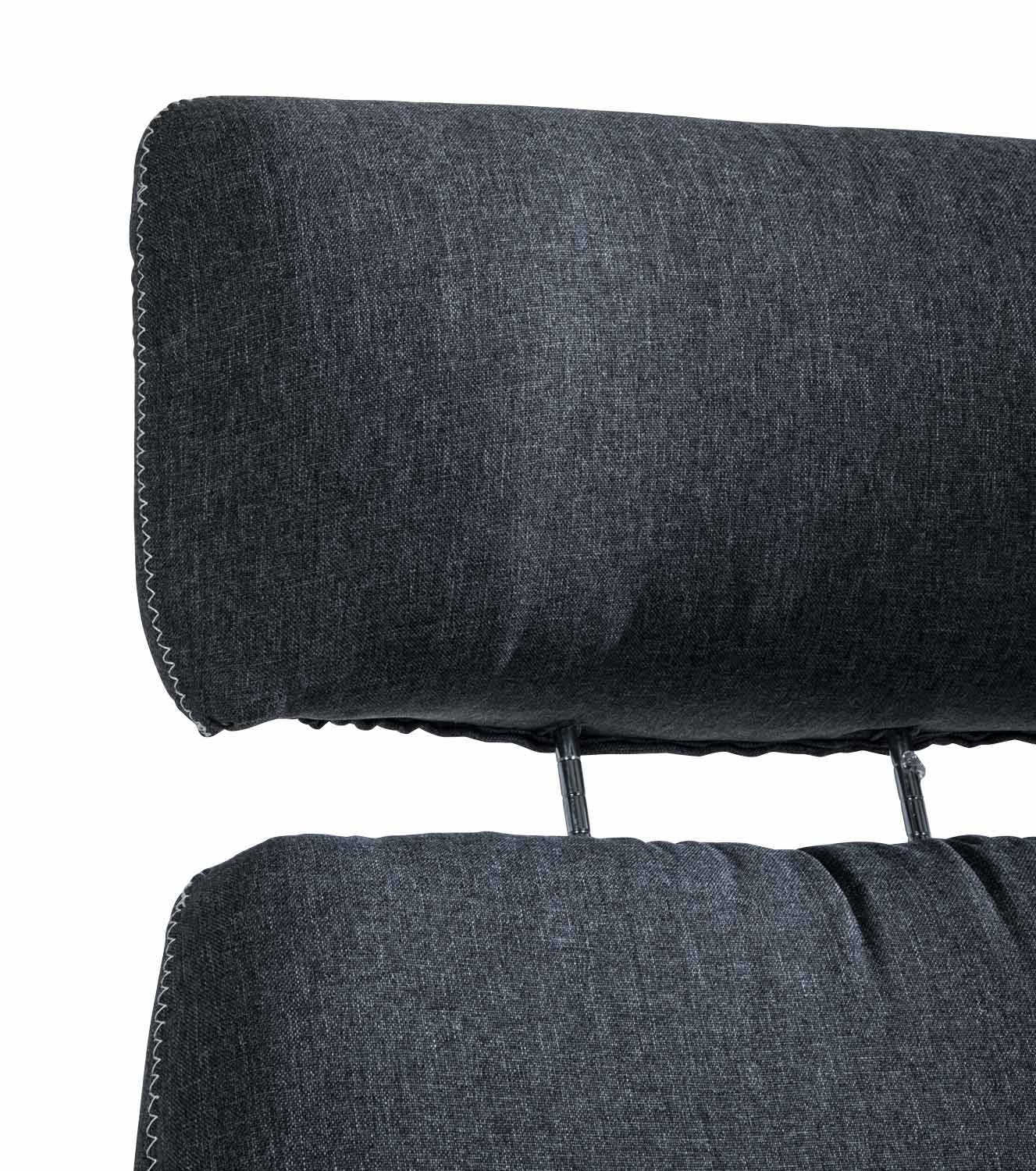 - Den dunkelgrauen Webstoffbezug zieren weiße Ziernähte und schaffen so einen farblichen Kontrast.