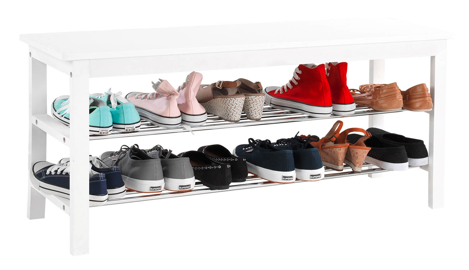 | Lieferumfang: | 1 Schuhbank mit 2 Ablagen und 1 Sitzfläche |