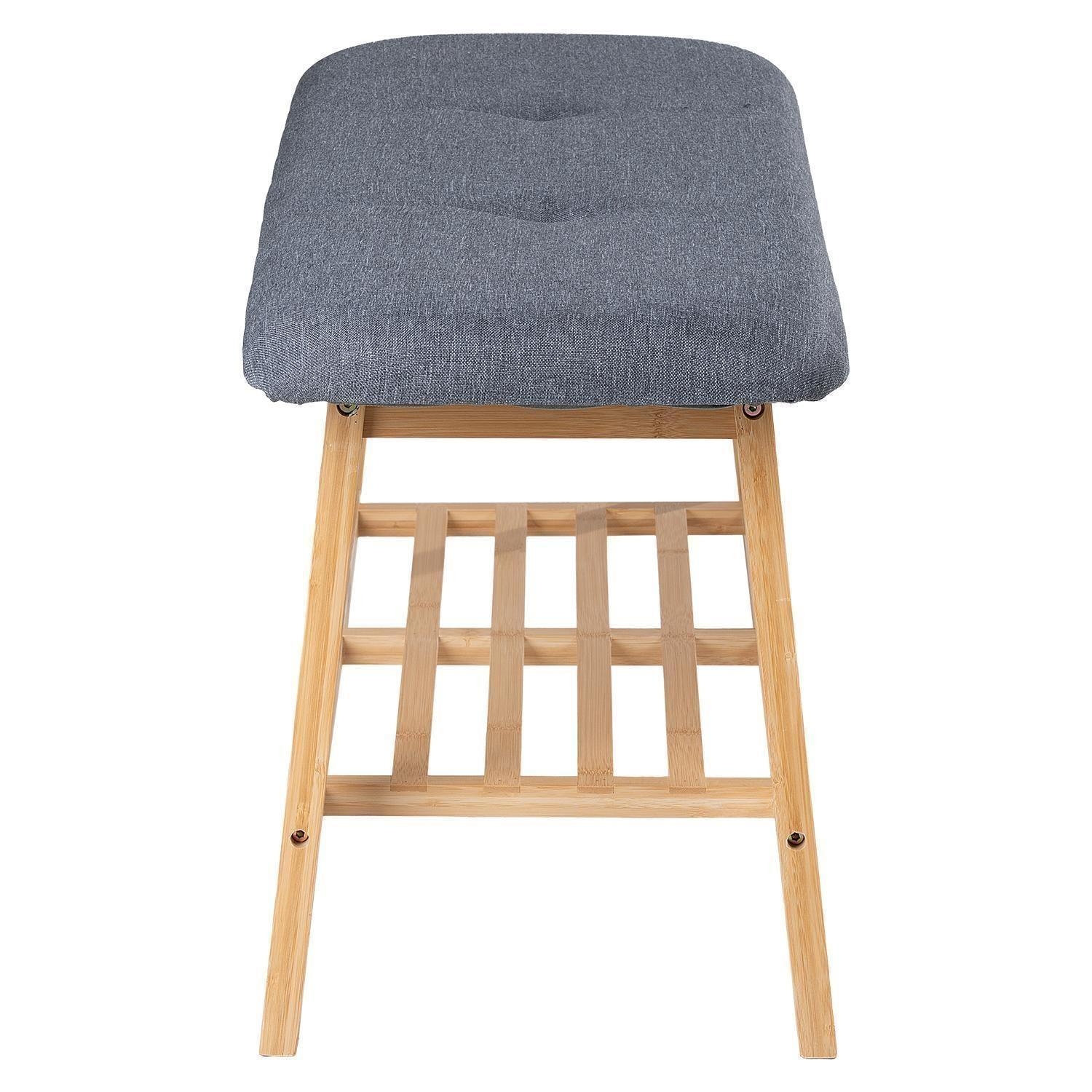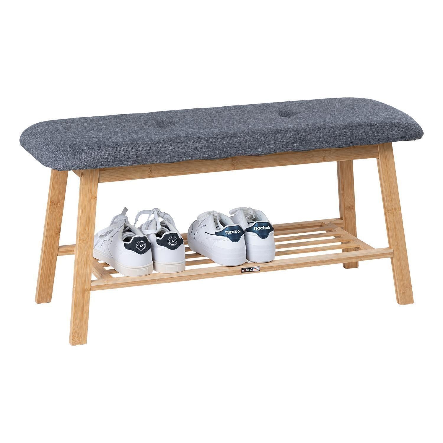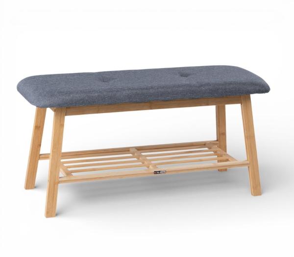 Die Schuhbank ZORO der Marke Home4You ist mit einem Stoffbezug in Grau ausgestattet. Gestell und Ablagefläche bestehen aus Bambusholz. Die Ablagefläche bietet Platz für bis zu 3 Paar Schuhe. Die maximale Belastbarkeit beträgt 170 kg. Die Maße der Schuhbank liegen bei 89 cm Breite, 45 cm Höhe und 35 cm Tiefe.