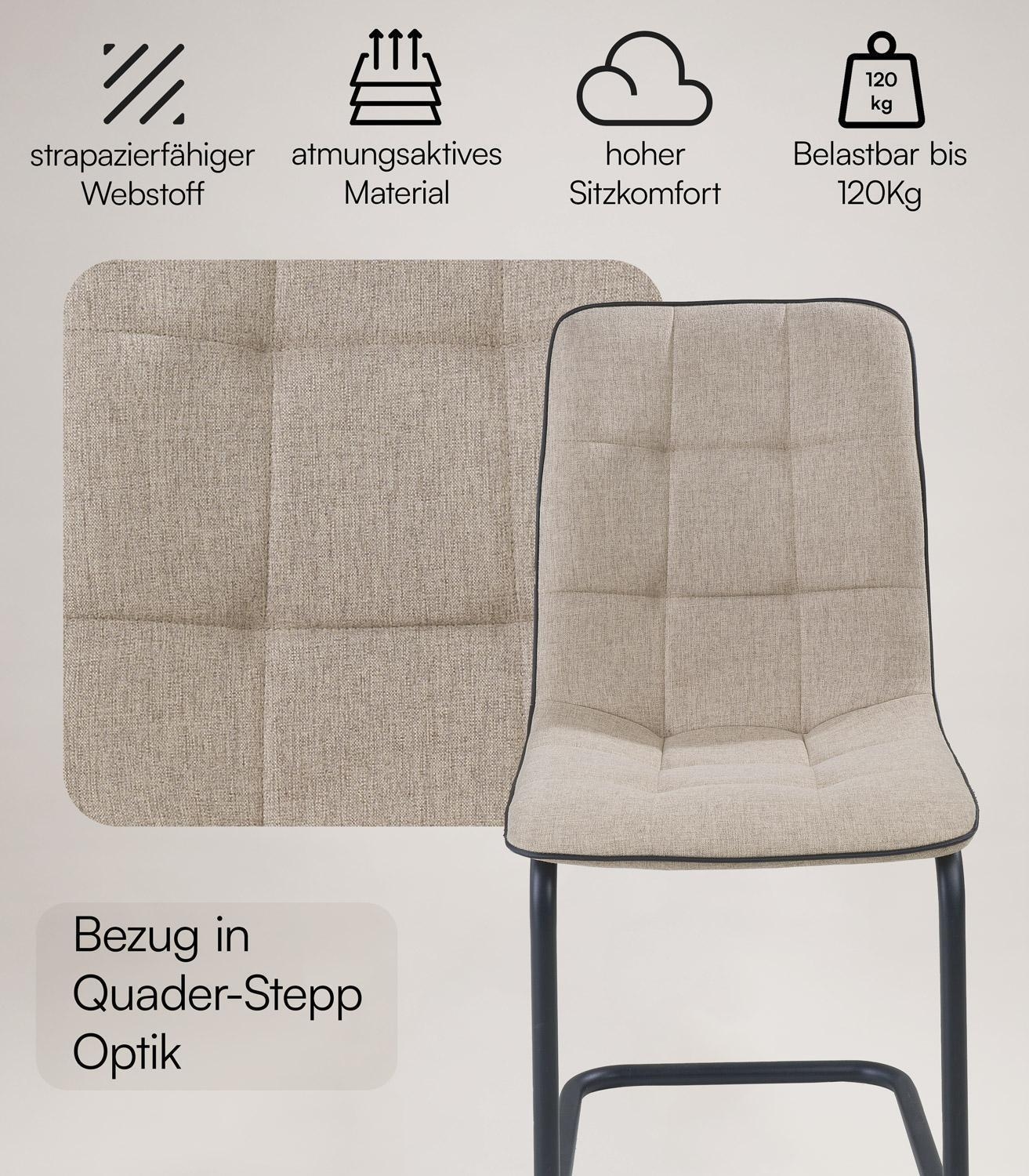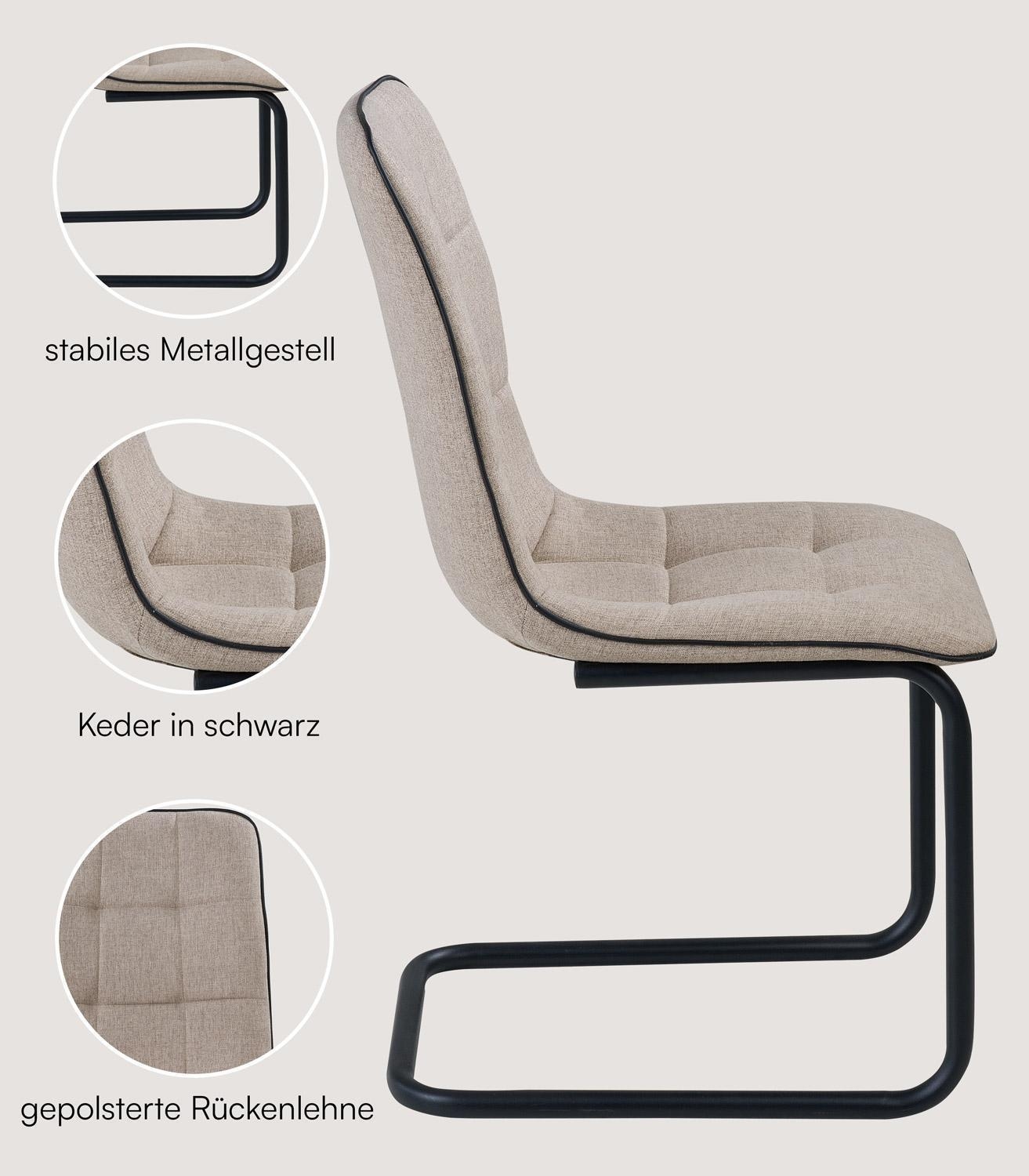 Der zeitlos gestaltete Schwingstuhl wird in den Farben Braun und Schwarz geliefert. Die matte Oberfläche des Metallgestells harmoniert perfekt mit dem strapazierfähigen Webstoff-Bezug aus 100 % Polyester. Mit einer Belastbarkeit von bis zu 120 kg bietet dieser Stuhl nicht nur stilvolles Design, sondern auch Robustheit und Langlebigkeit. Perfekt für vielseitige Anwendungsbereiche in Ihrem Zuhause.