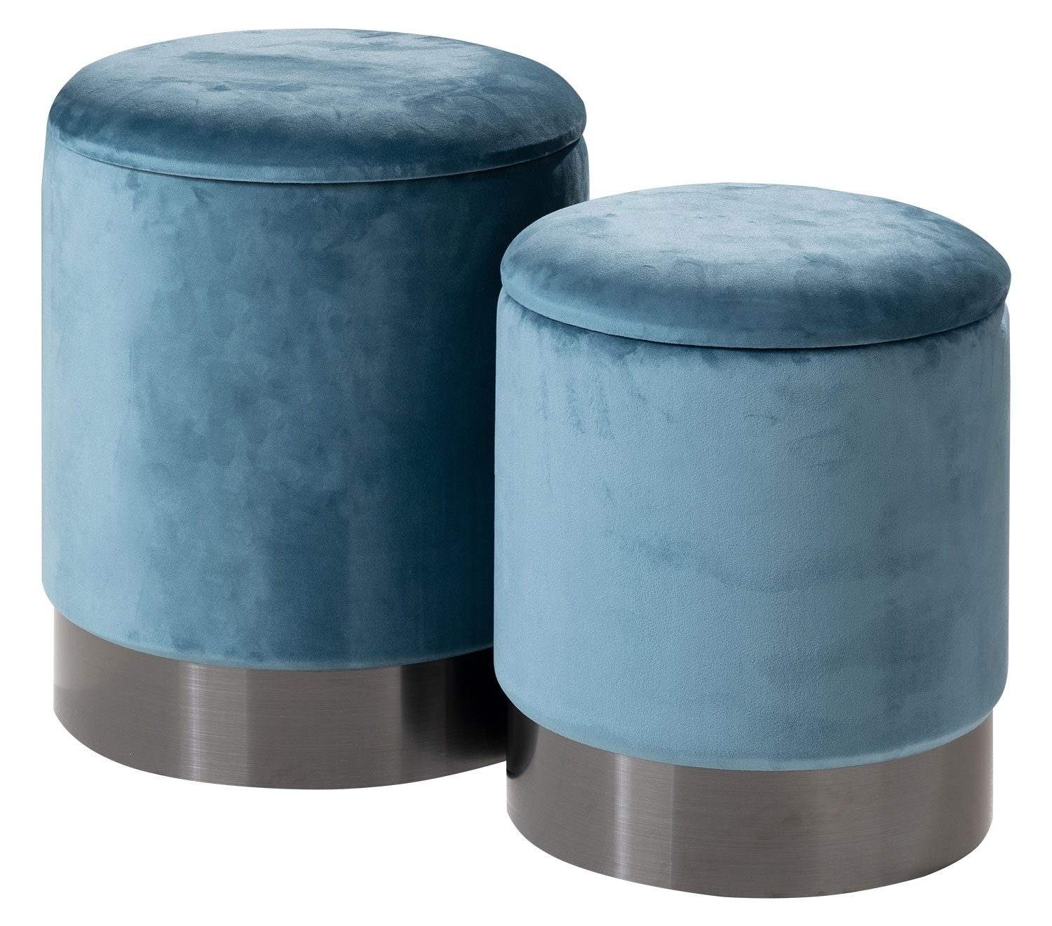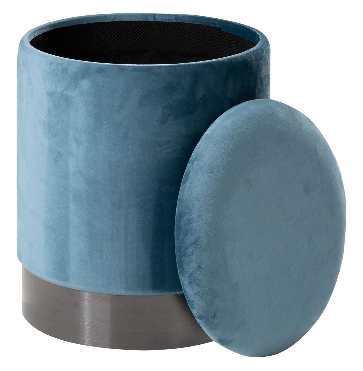 Hellblau - Stahlgrau - Ø 36 cm - Samtbezug - mit abnehmbarem Deckel