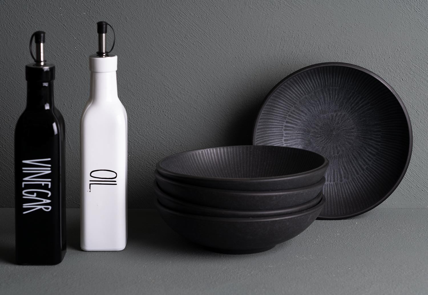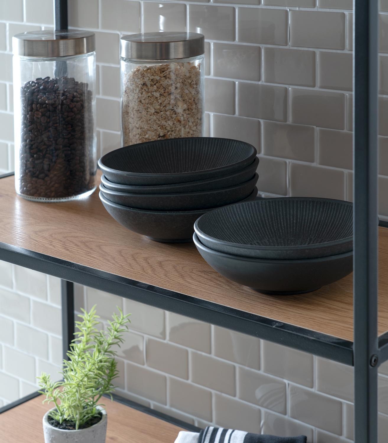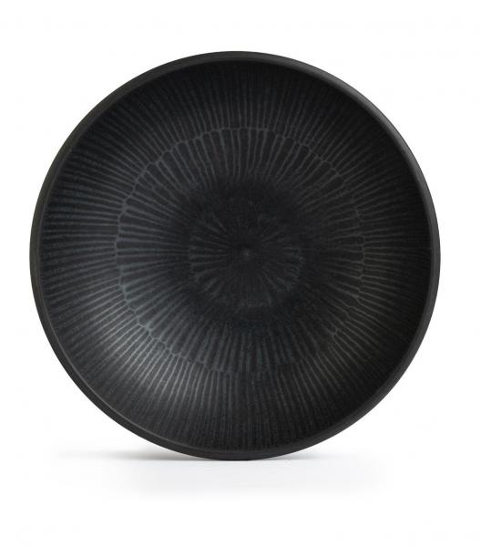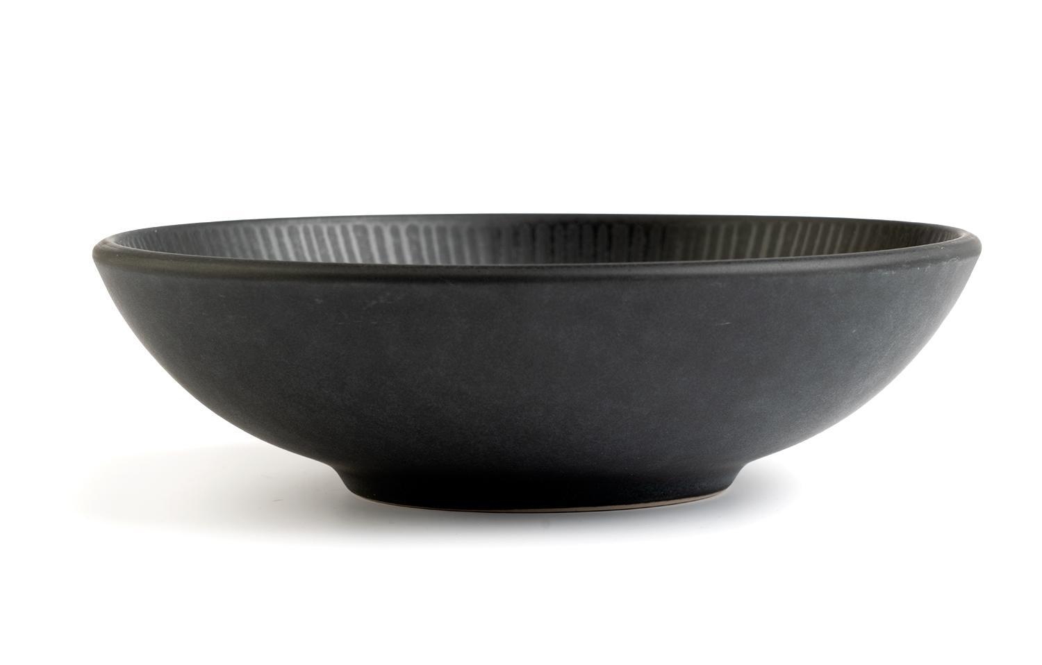 Schwarz matt - Steingut - mit linienförmiger Reliefprägung