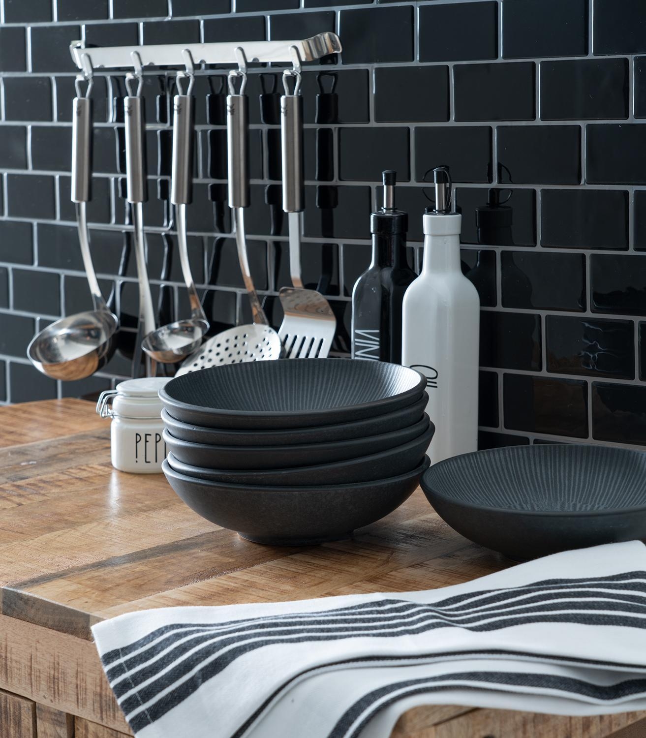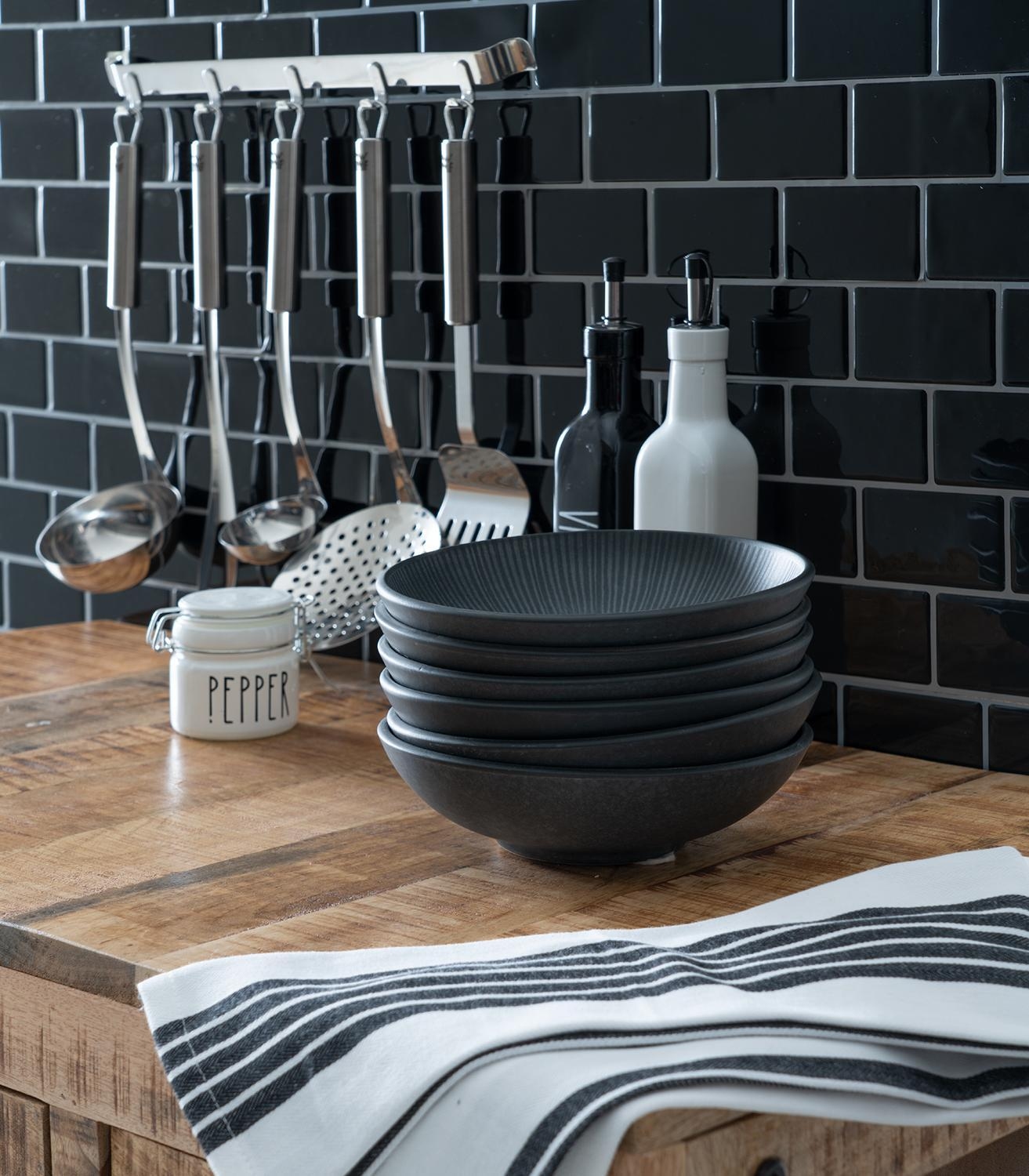 Der Suppenteller BAILO von Home4You ist eine stilvolle und funktionale Ergänzung für Ihre Geschirrsammlung. Er wird einzeln geliefert und ist in einem eleganten matten Schwarz mit einer linienförmigen Reliefprägung gehalten, die ihm ein modernes und ansprechendes Aussehen verleiht. Mit einem Durchmesser von 19 cm bietet dieser Suppenteller ausreichend Platz für Ihre Lieblingssuppen, Eintöpfe oder andere köstliche Gerichte. Das Steingutmaterial sorgt für Robustheit und Langlebigkeit, während die mikrowellen- und spülmaschinengeeigneten Eigenschaften eine bequeme Nutzung und Reinigung ermöglichen.