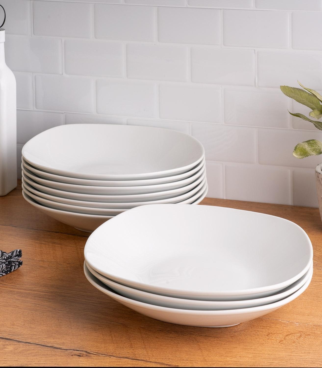 Der Suppenteller von Home4You ist ein vielseitiges Geschirrstück für Ihren Esstisch. Er wird einzeln geliefert und besteht aus hochwertigem Porzellan in klassischem Weiß, das zu jeder Tischdekoration passt. Mit einem Durchmesser von 22 cm bietet dieser Suppenteller ausreichend Platz für Suppen, Eintöpfe und andere köstliche Gerichte. Das schlichte, unifarbene Design macht ihn zu einem zeitlosen und eleganten Stück, das sich für den täglichen Gebrauch ebenso eignet wie für besondere Anlässe.